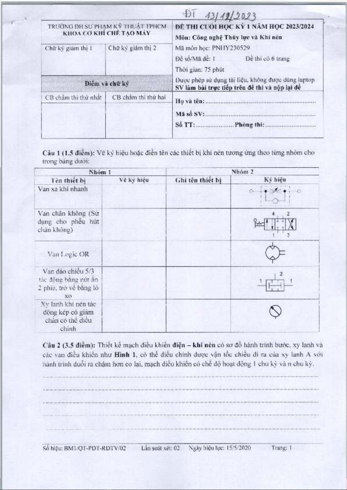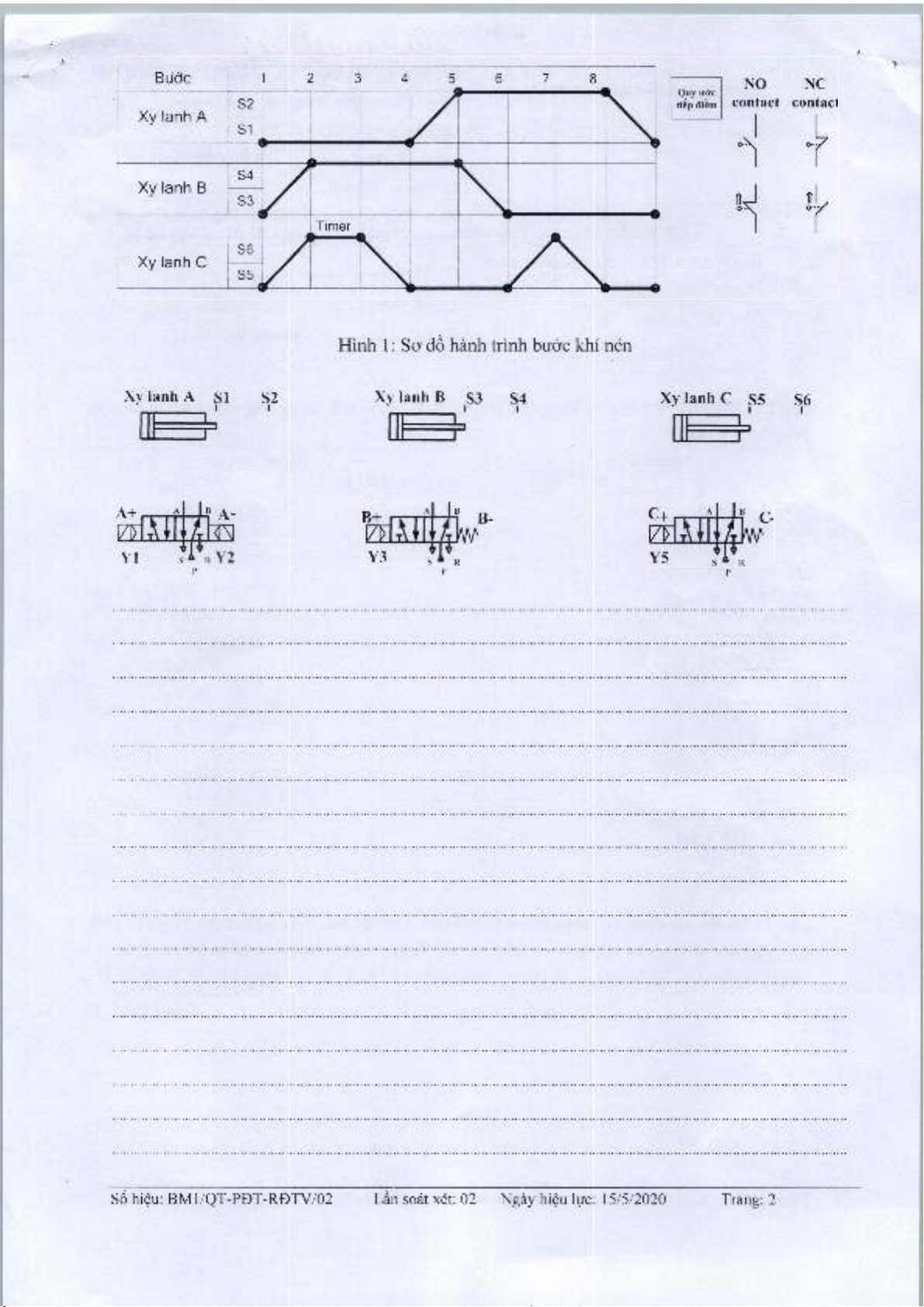 Cau 2 (3.5 diem): Thiet ke mach dieu khien dien - khi nen co so do hanh trinh buoc, xy lanh va