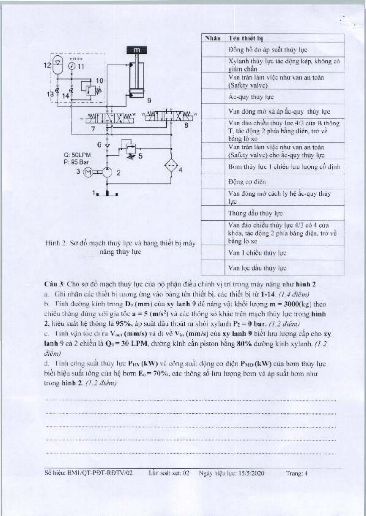 2, hieu suat he thong la 95%, ap suat dau thoat ra khoi xylanh Pz = 0 bar. (1,2 diem)