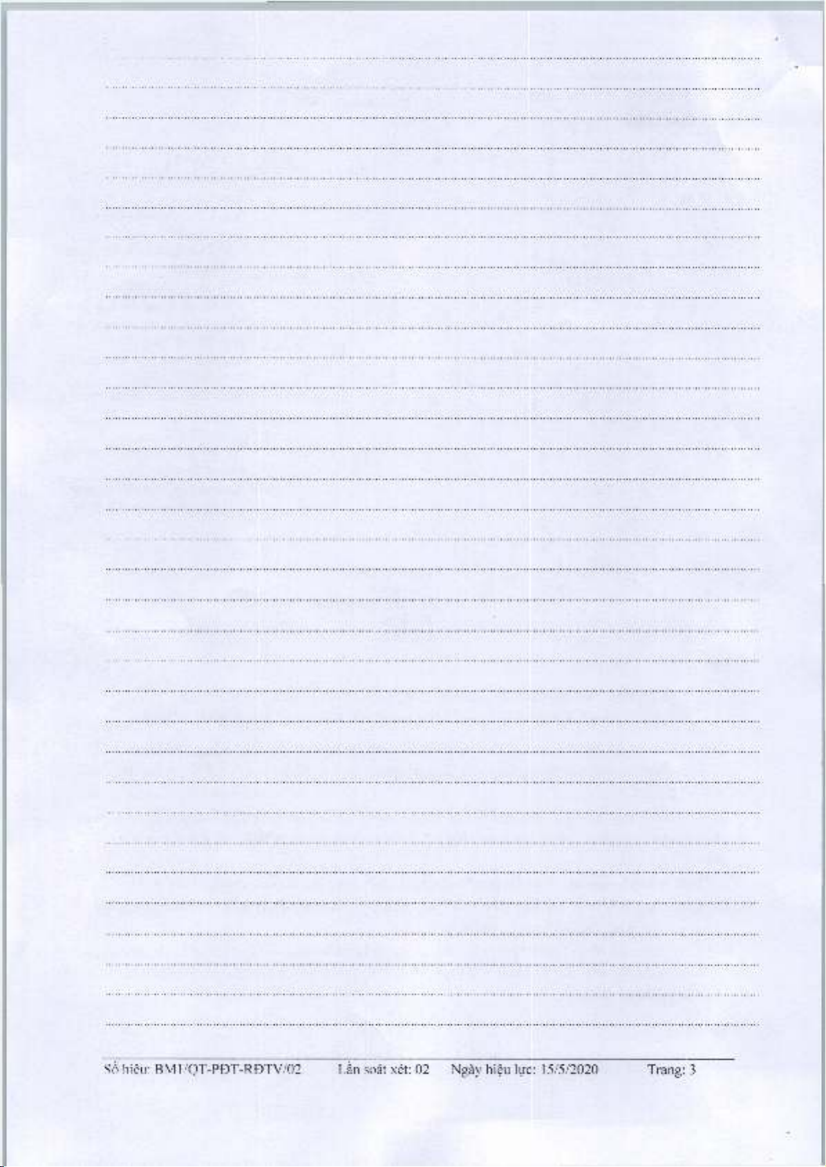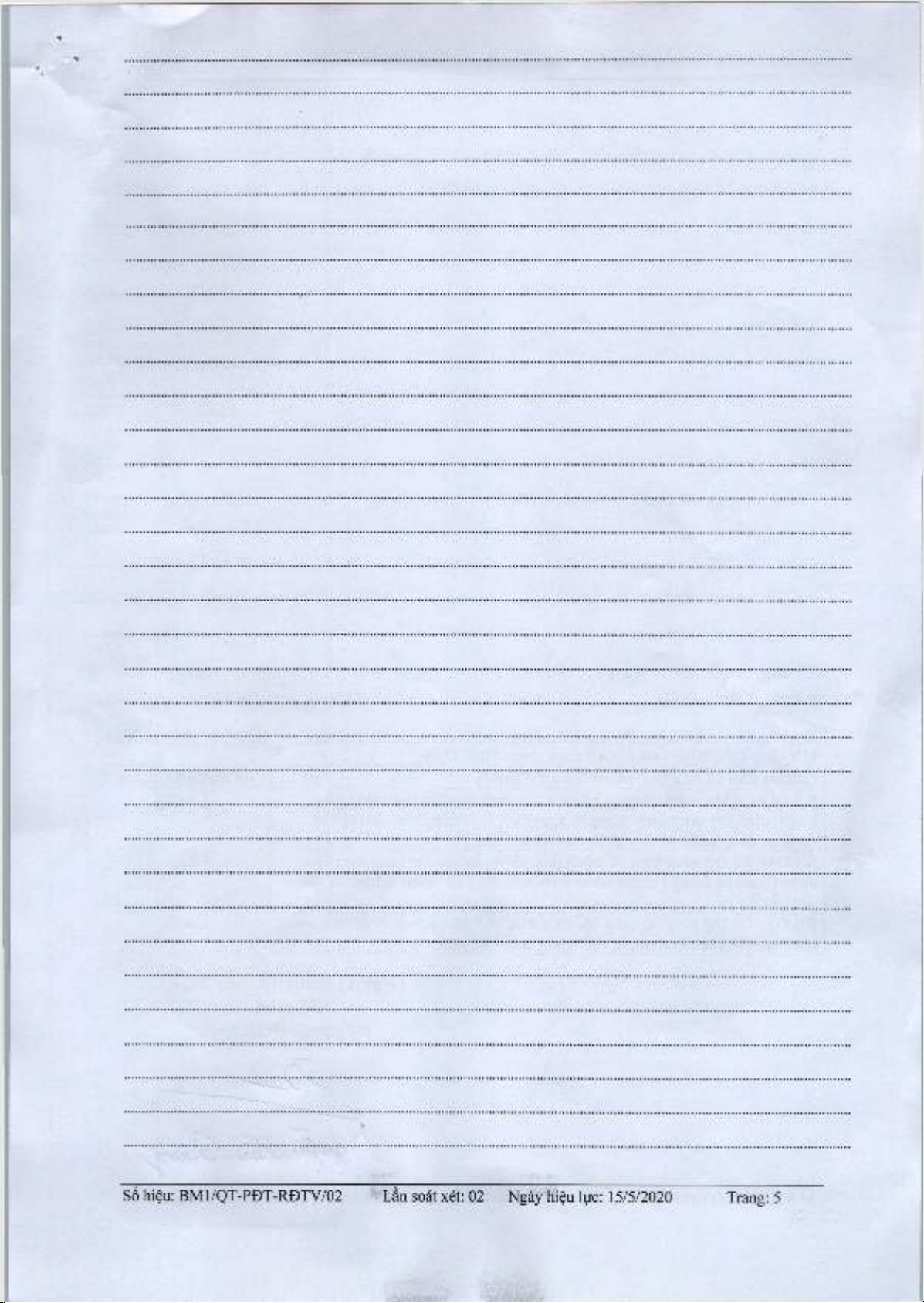 S o h i e u : B M 1 / Q T - P D T - R D T V / 0 2 L a n s o a t x e t : 0 2 N g a y h i e u l u c : 1 5 / 5 / 2 0 2 0 T r a n g : 5