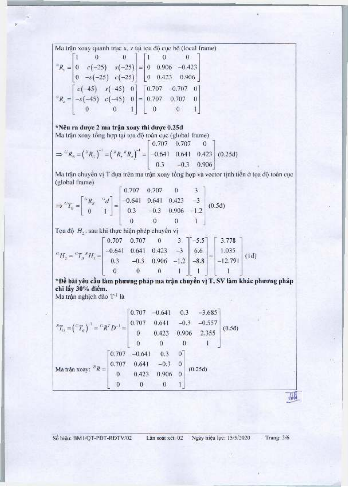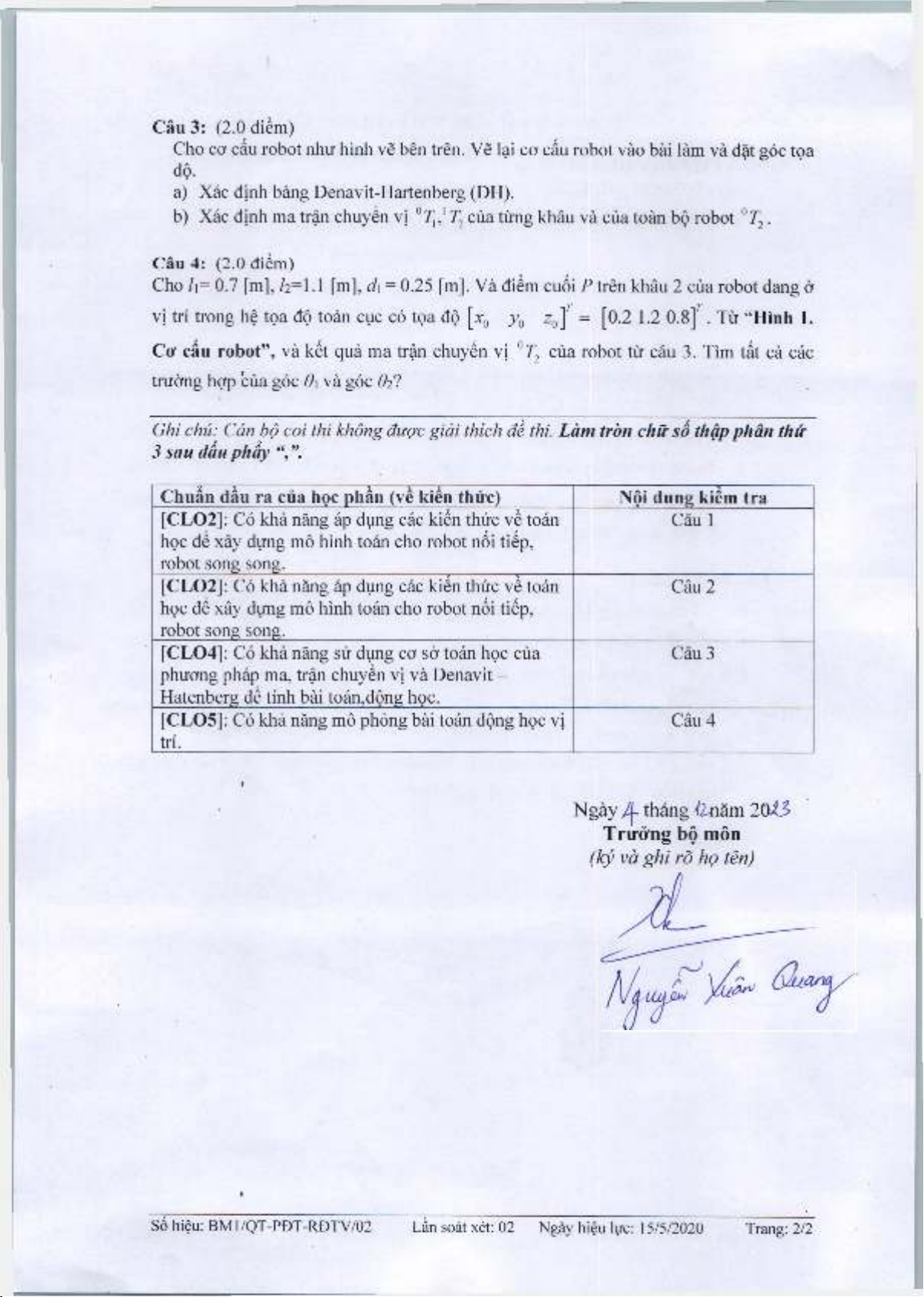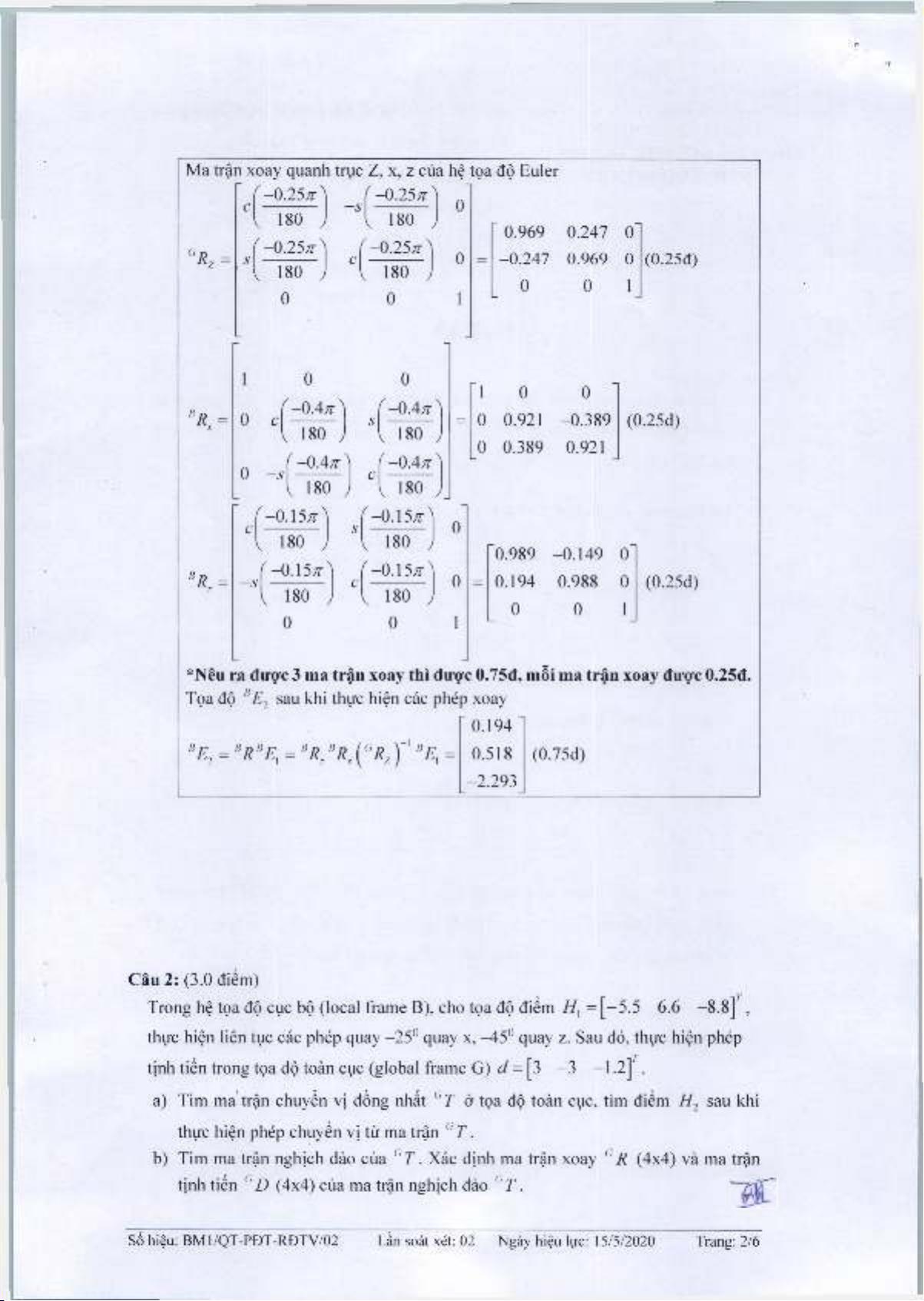 Co1 cau robot”, va ket qua ma tran chuyen vi °T2 cua robot tir cau 3. Tim tat ca cac