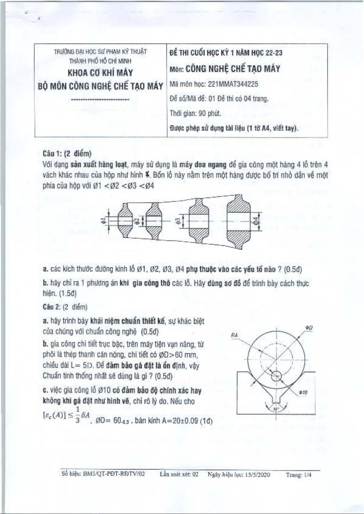TRÖÖNG OAI HOC Sli PHAM KY THUÄT OE THI CUÖI HOC KY 1 NÄM HOC 22-23