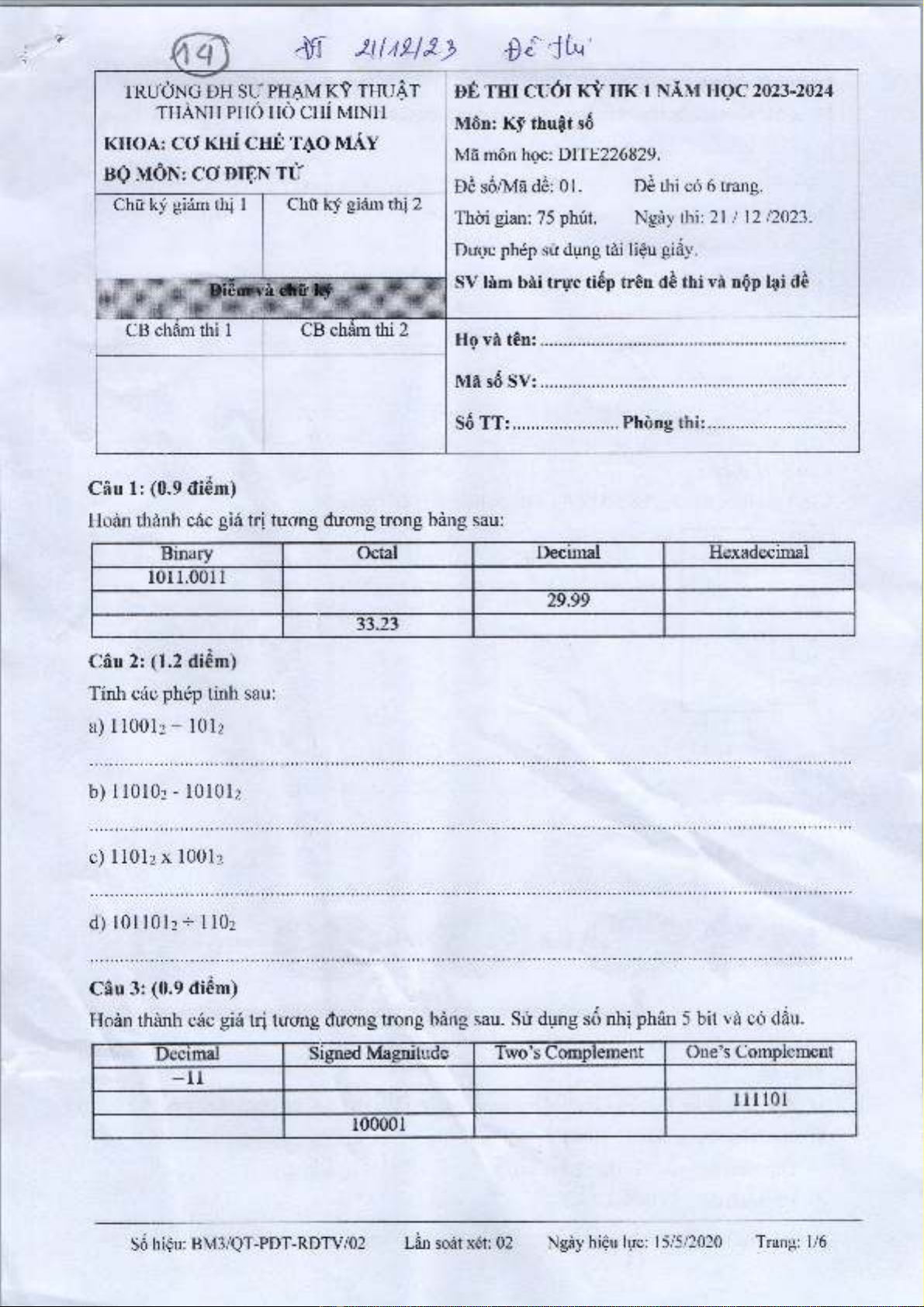 Thai gian: 75 phut. Ngay thi: 21 / 12 /2023.