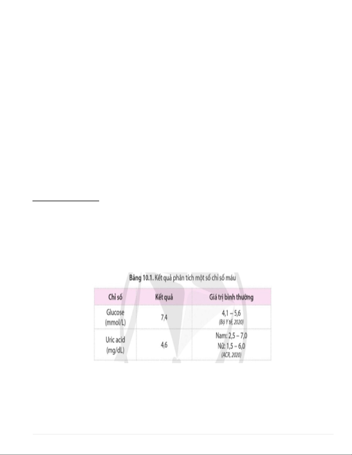 Câu 4:((1,0 điểm) Bảng 10.1 thể hiện kết quả xwt nghiệm máu lúc đói của một người phụ nữ 30
