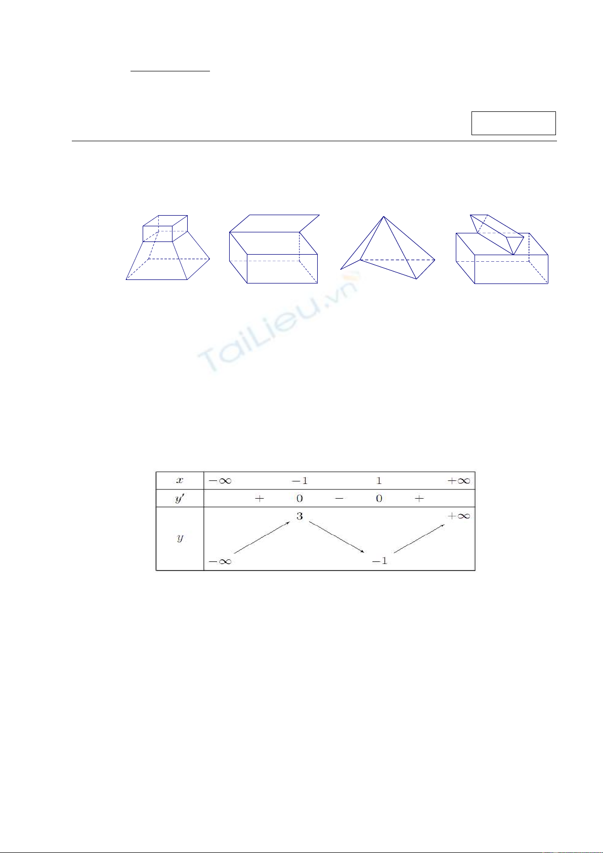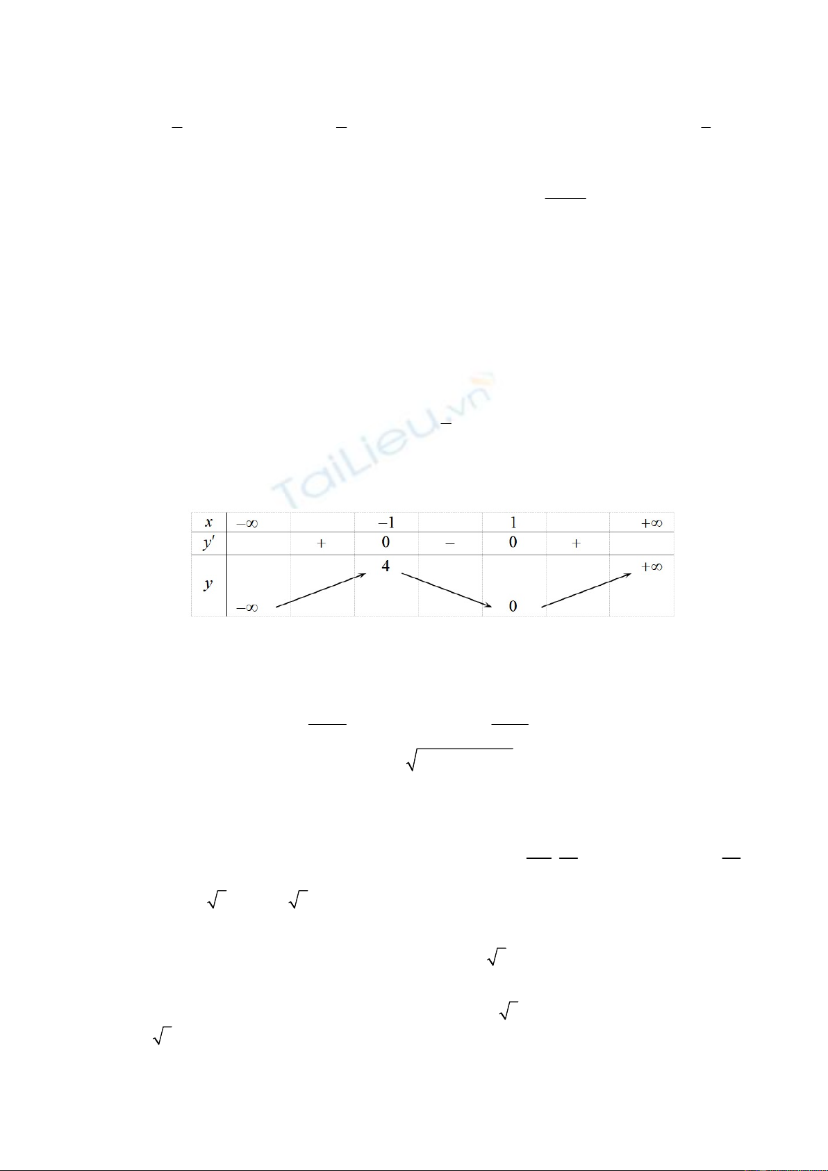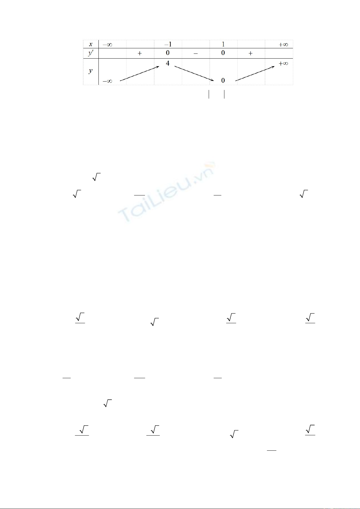 có bảng biến thiên như sau: