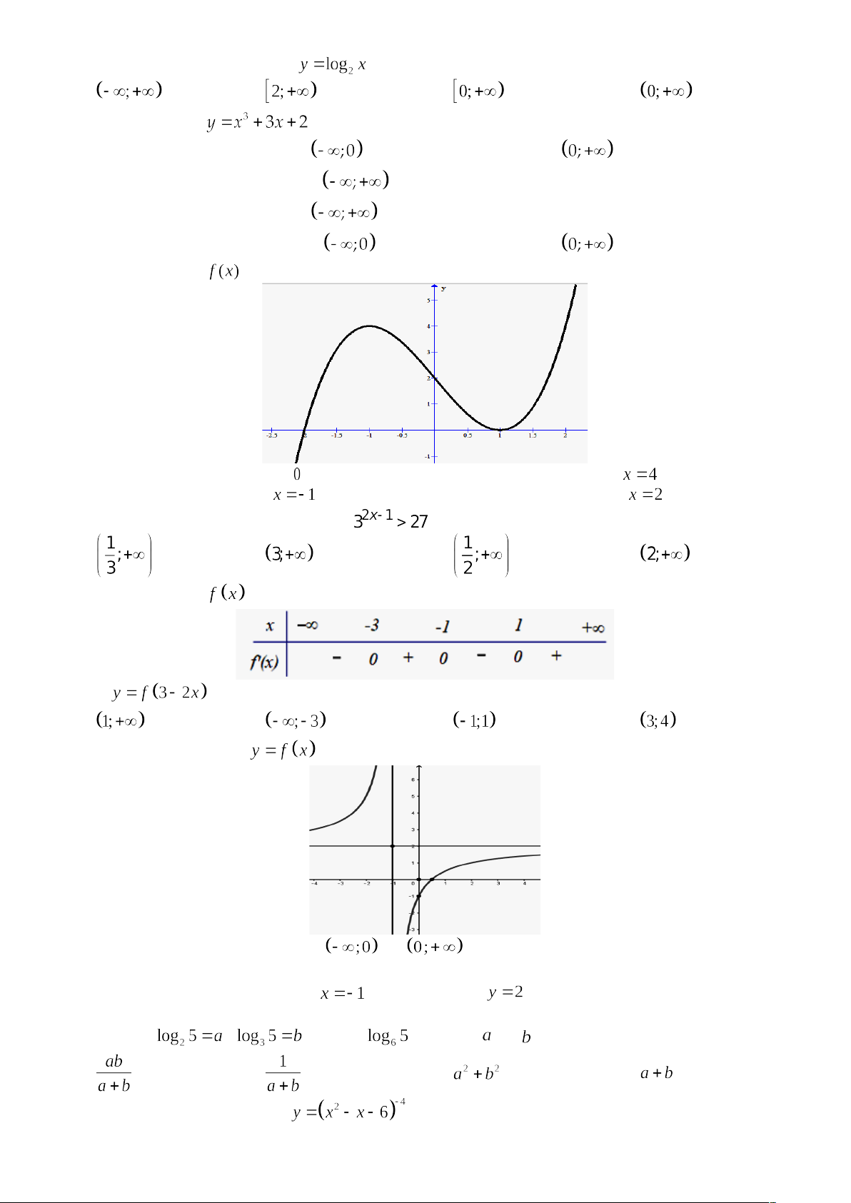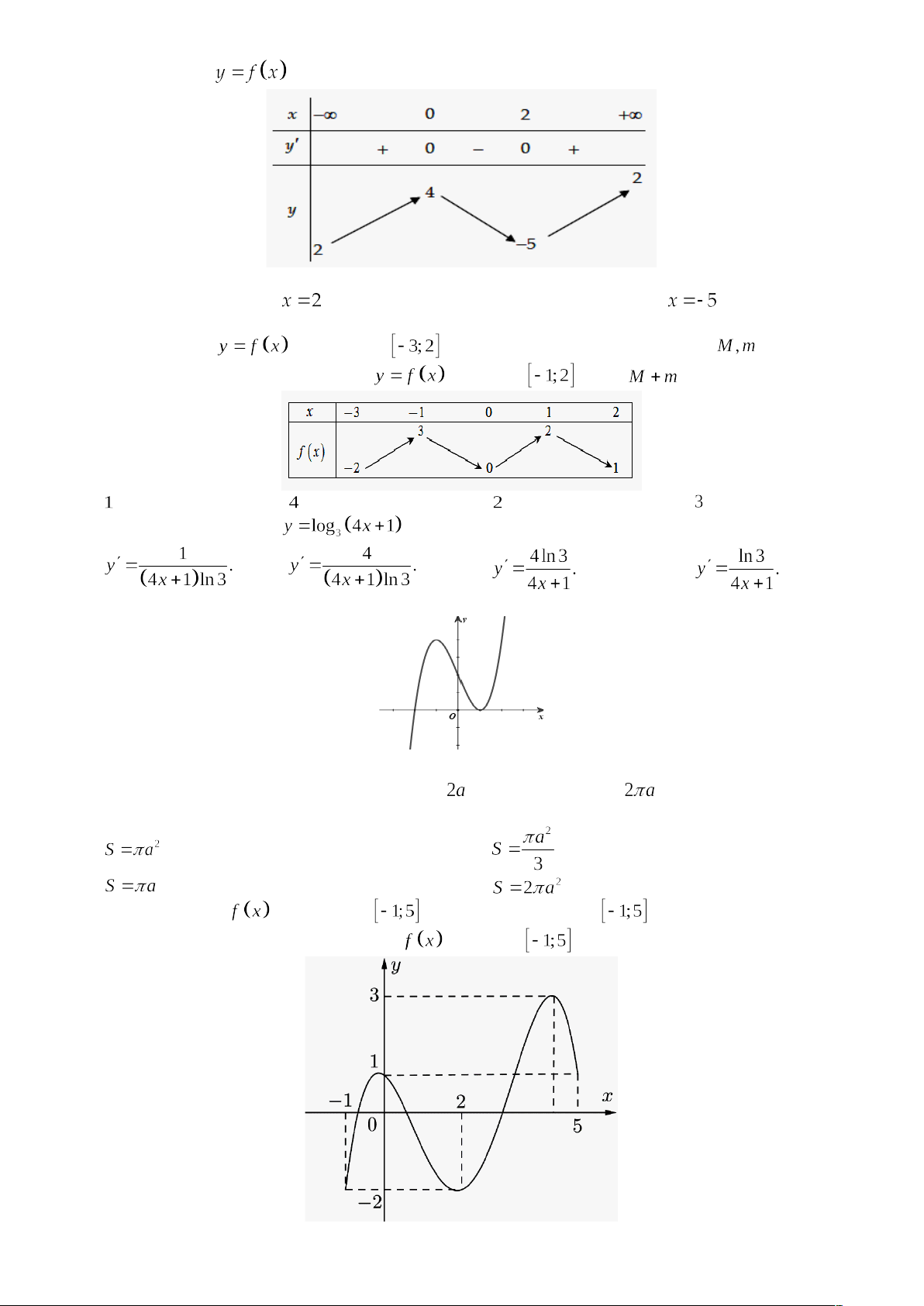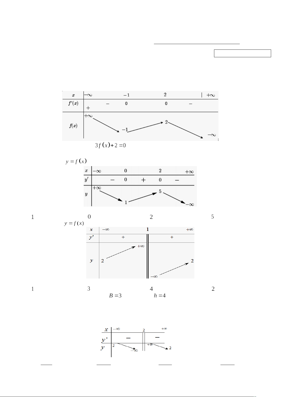 Câu 2: Cho hàm số có bảng biến thiên như sau