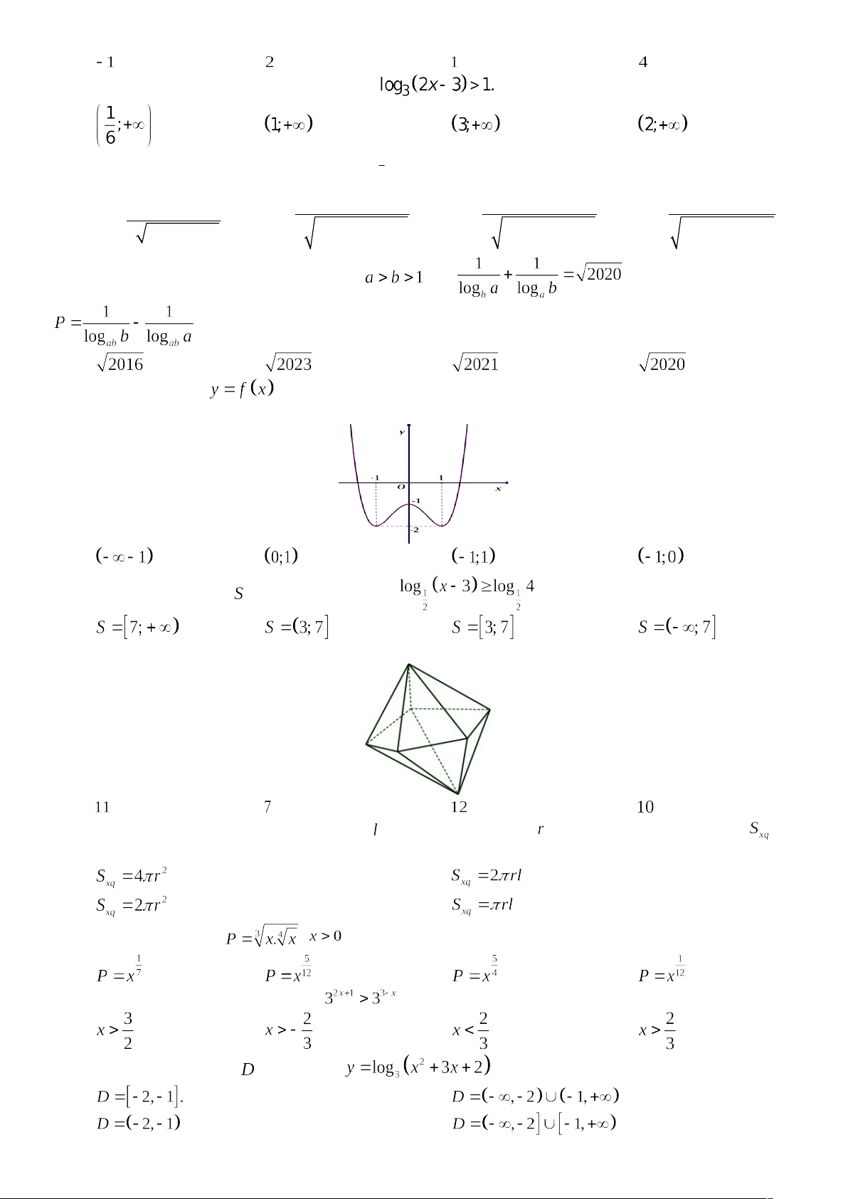 Câu 10: Đường cong hình bên là đồ thị của một trong bốn hàm số dưới đây. Hàm số đó là hàm số nào?