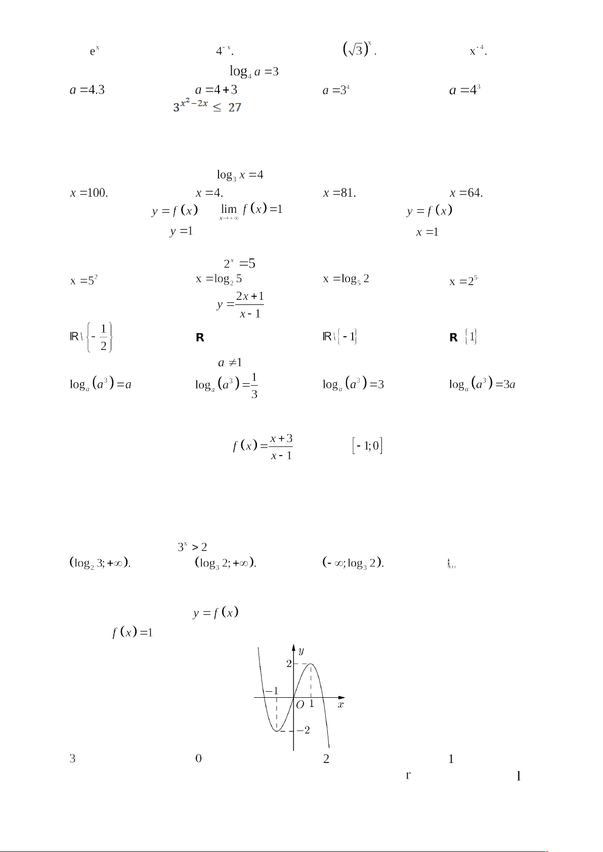 Câu 32. Đường cong ở hình dưới đây là đồ thị của hàm số nào?