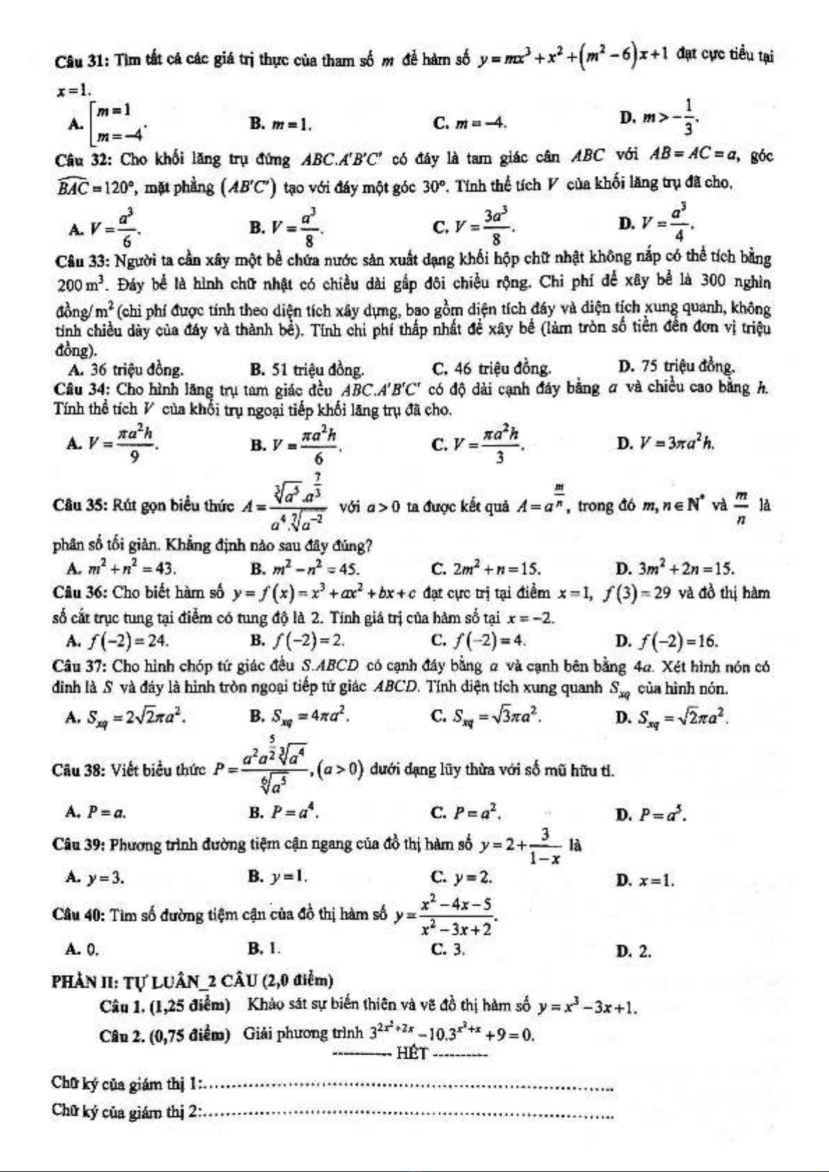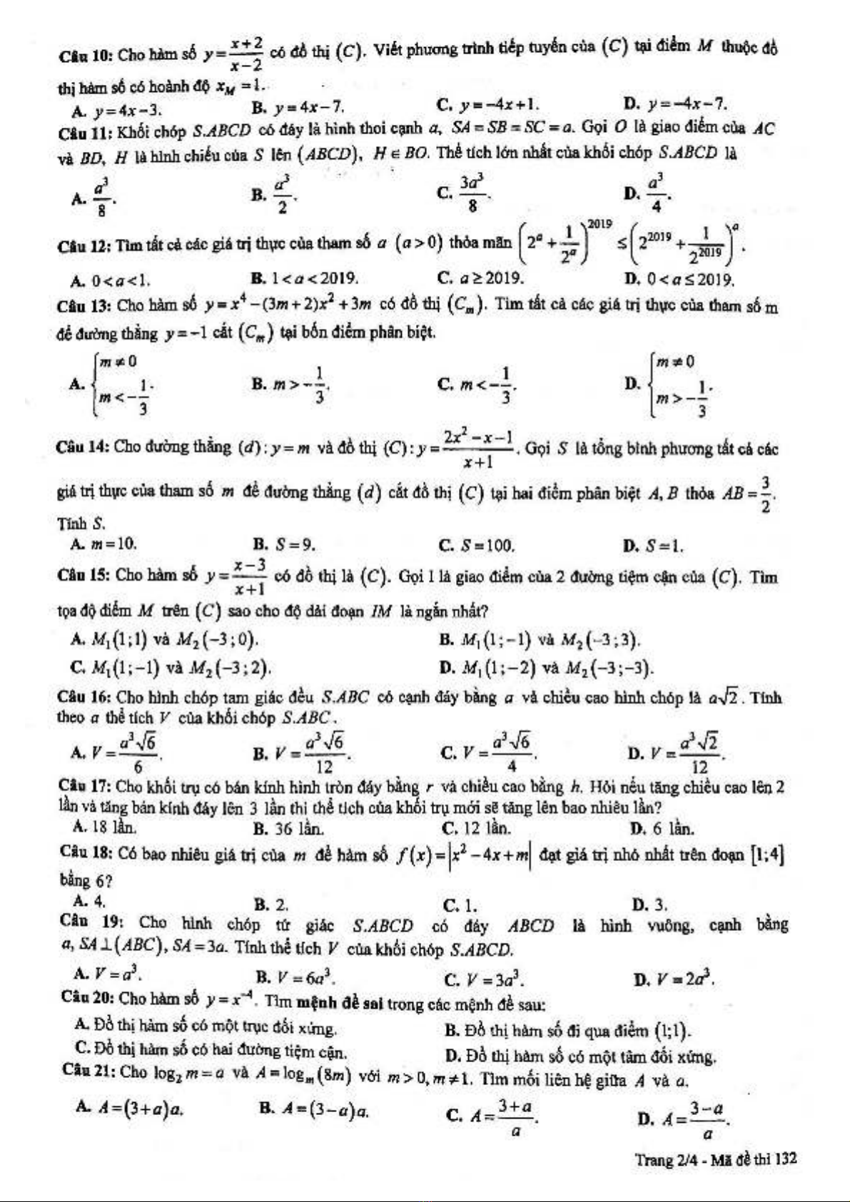 Để đạt thành tích cao trong kì thi sắp tới, các bạn học sinh có thể sử dụng tài liệu Đề thi học kì 1 môn Toán 12 năm 2018-2019 có đáp án - Sở GD&ĐT Thừa Thiên Huế - Mã đề 132 sau đây làm tư liệu tham khảo giúp rèn luyện và nâng cao kĩ năng giải đề thi, nâng cao kiến thức cho bản thân để tự tin hơn khi bước vào kì thi chính thức. Mời các bạn cùng tham khảo đề thi.