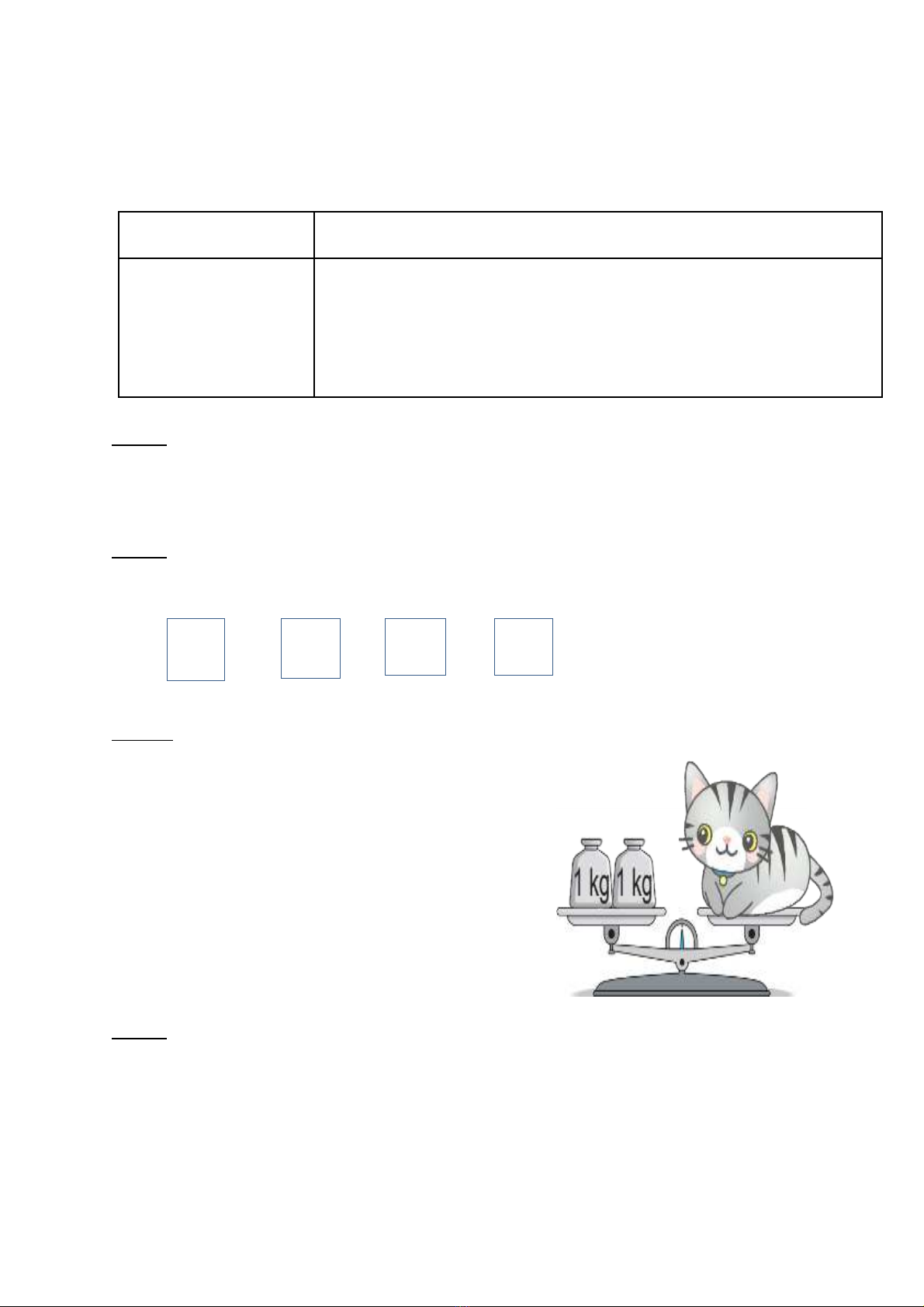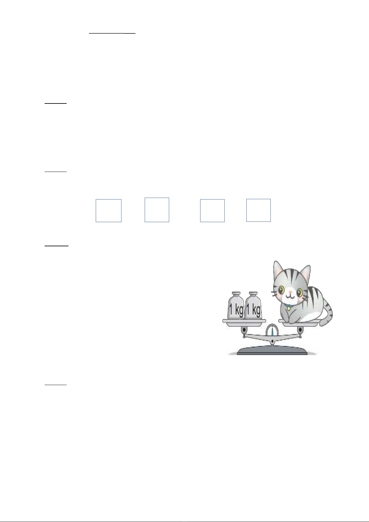 Câu 3 : (M1- 1 điểm) Khoanh vào chữ đặt trước đáp án chỉ cân nặng của chú mèo.