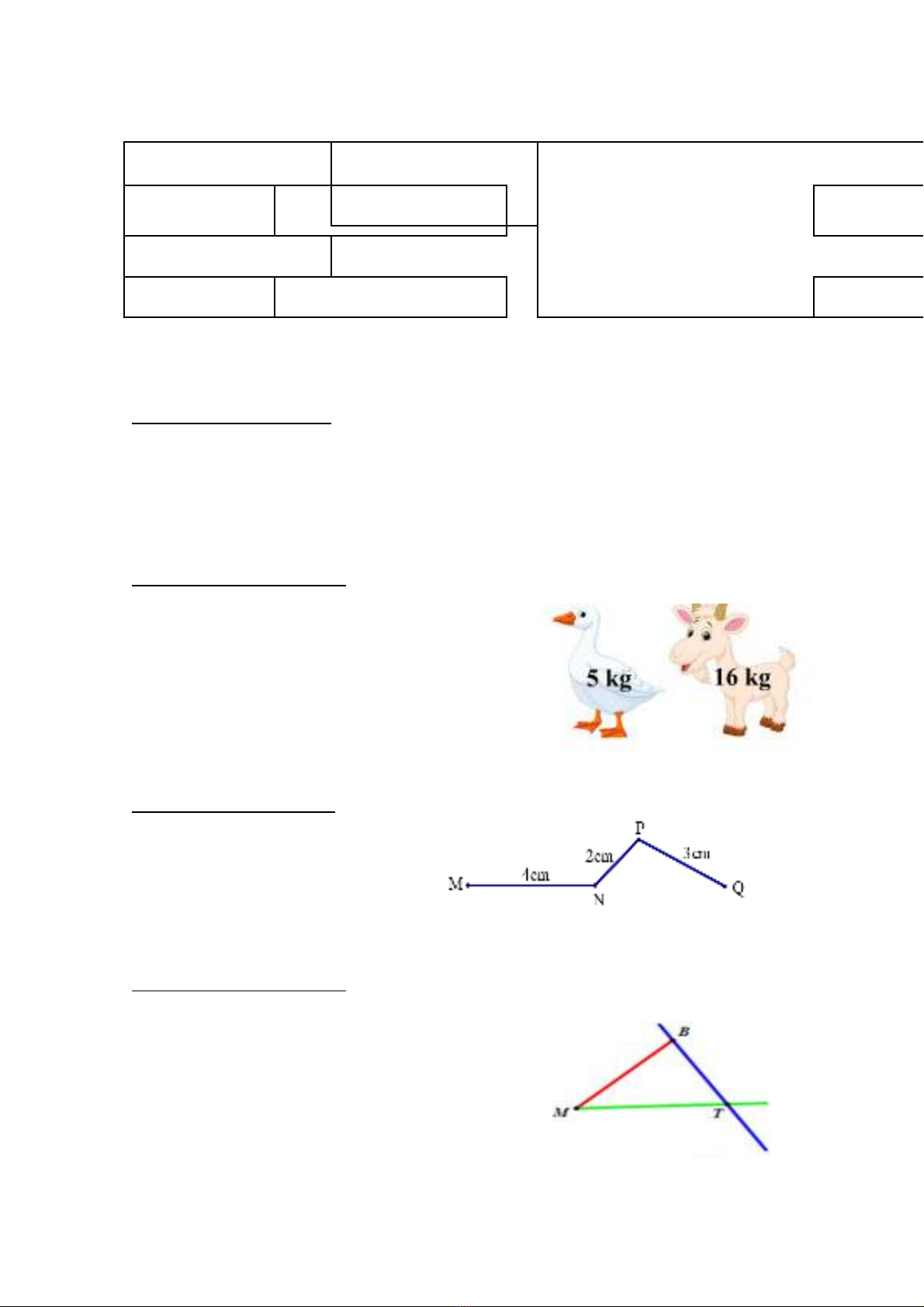 Câu 2 (0,5 điểm – M1): Ngỗng nặng 5kg. Dê nặng 16kg. Hỏi cả hai con nặng