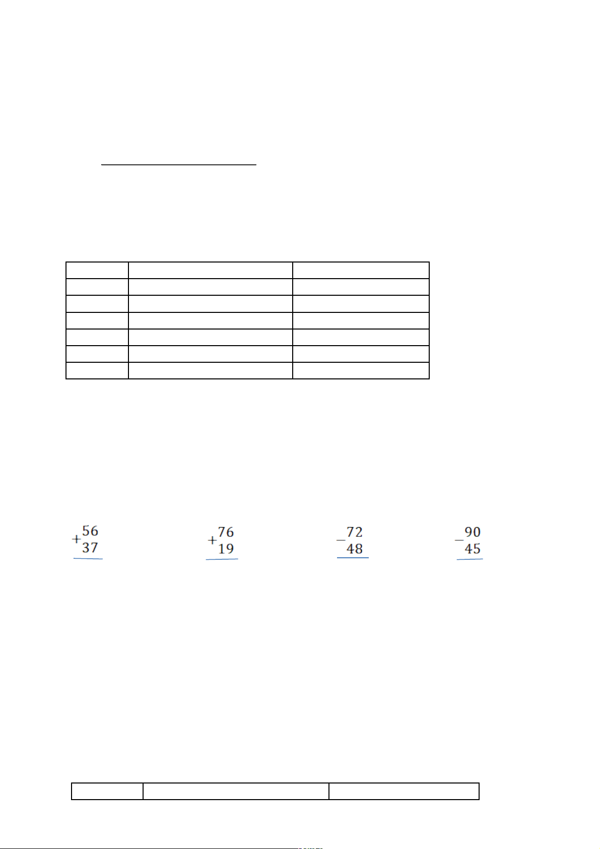 56 + 37 76 + 19 72 – 48 90 – 45