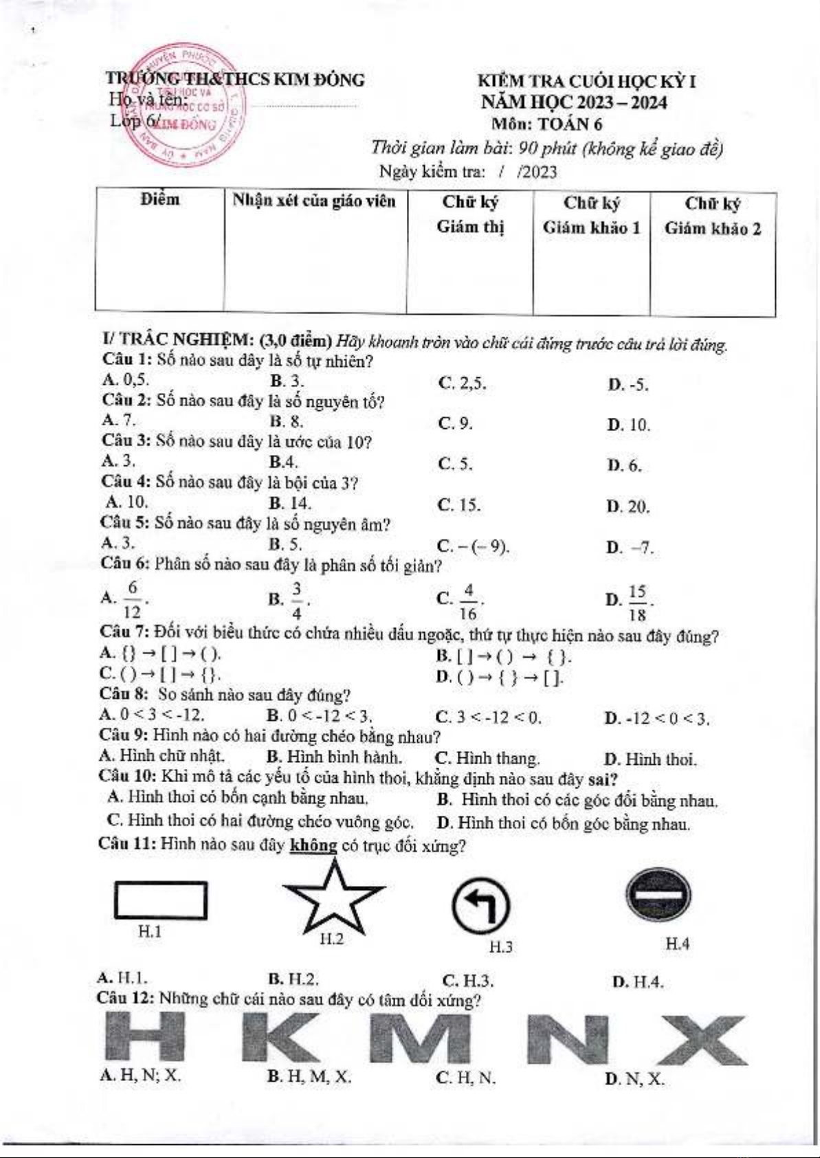 Thông qua việc giải trực tiếp trên “Đề thi học kì 1 môn Toán lớp 6 năm 2023-2024 có đáp án - Trường TH&THCS Kim Đồng, Phước Sơn” các em sẽ nắm vững nội dung bài học, rèn luyện kỹ năng giải đề, hãy tham khảo và ôn thi thật tốt nhé! Chúc các em ôn tập kiểm tra đạt kết quả cao!