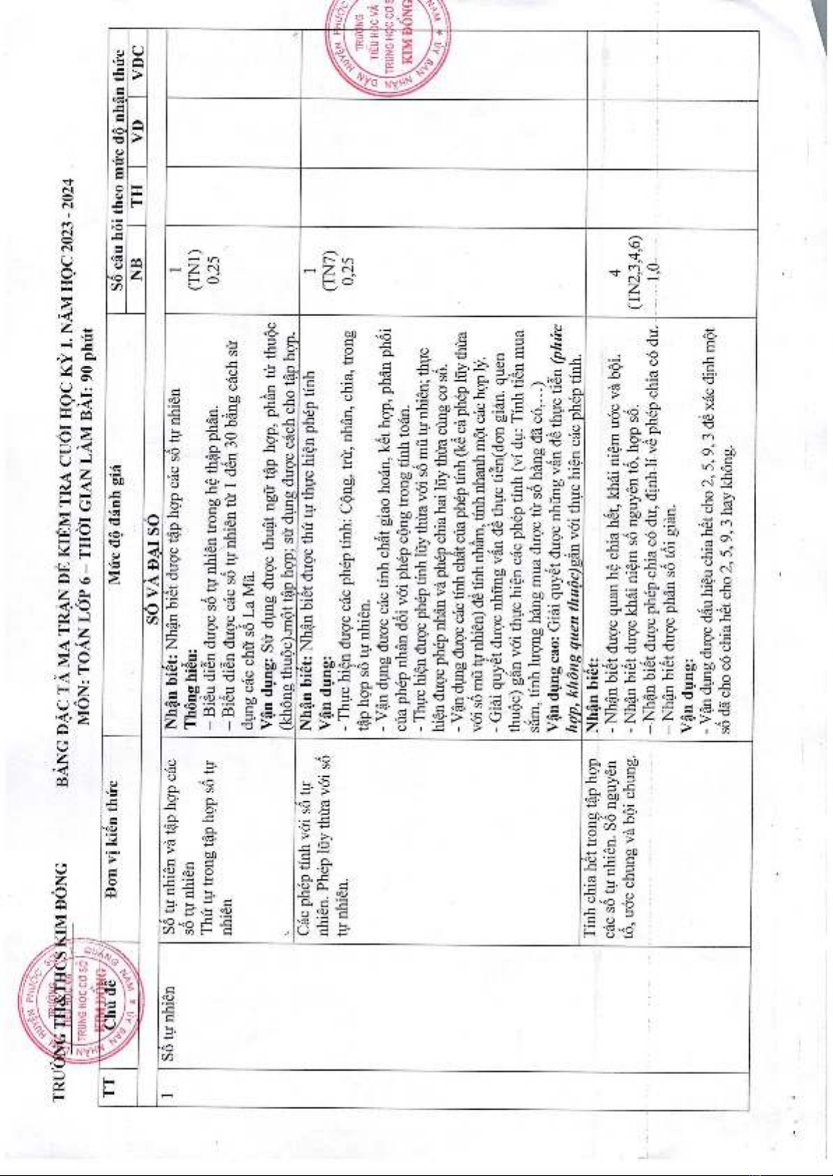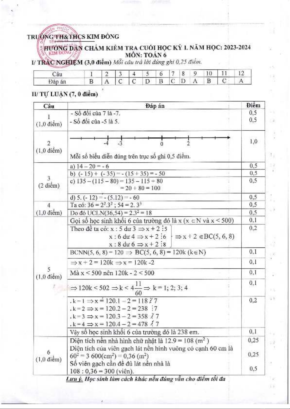 Đề thi học kì 1 môn Toán lớp 6 năm 2023-2024 có đáp án - Trường TH&THCS Kim Đồng, Phước Sơn