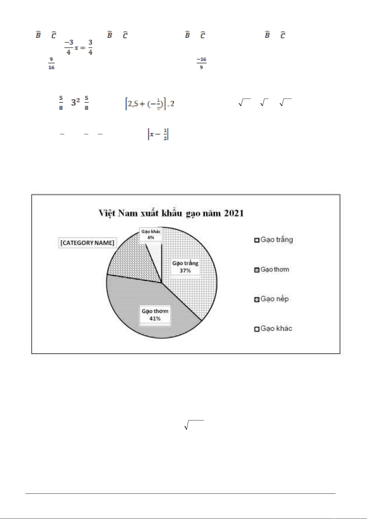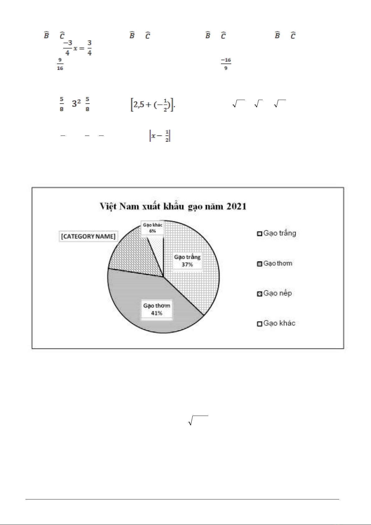 Bài 3.(1 điểm) Năm 2021, Việt Nam xuất khẩu (ước đạt) 6,2 triệu tấn gạo. Biểu đồ hình quạt tròn