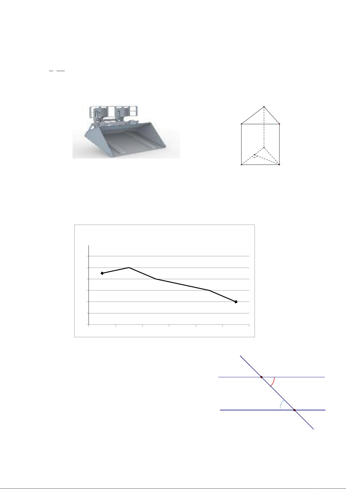 Đề Gàu xúc của một xe xúc (Hình a) có dạng gần như một hình lăng trụ đứng tam giác