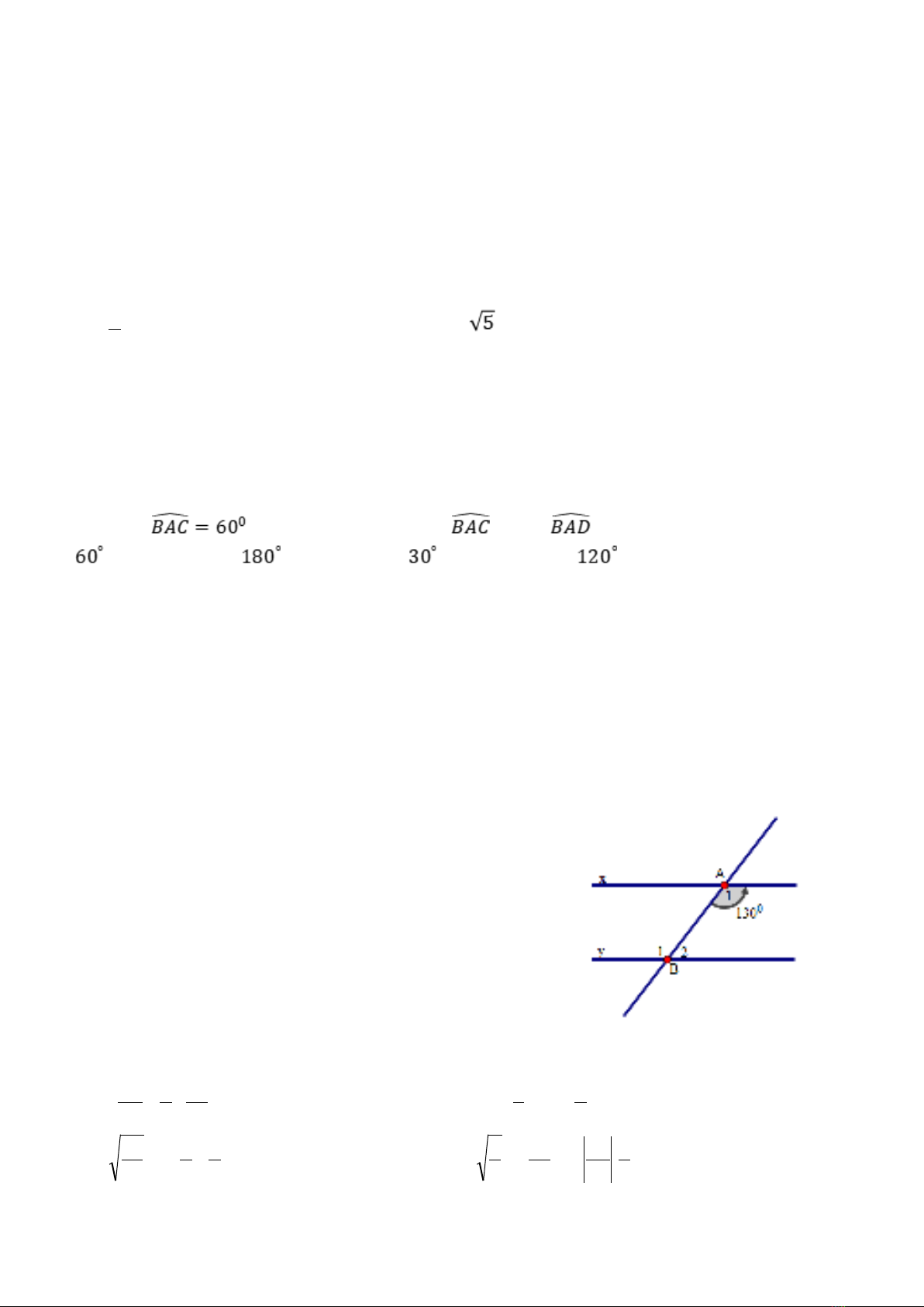 Câu 5: Cho , AD là tia phân giác của . Số đo bằng ?