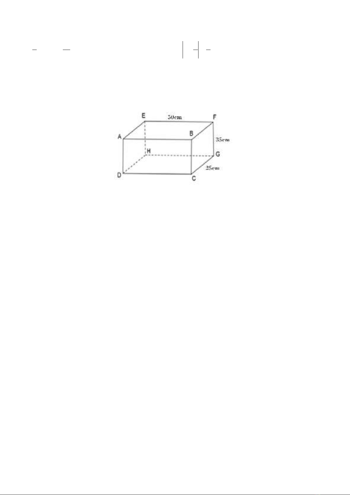 Câu 4: (1,5 điểm) Cho hình hộp chữ nhật ABCD.EFGH như hình vẽ (EF = 50cm, FG = 35cm, CG =