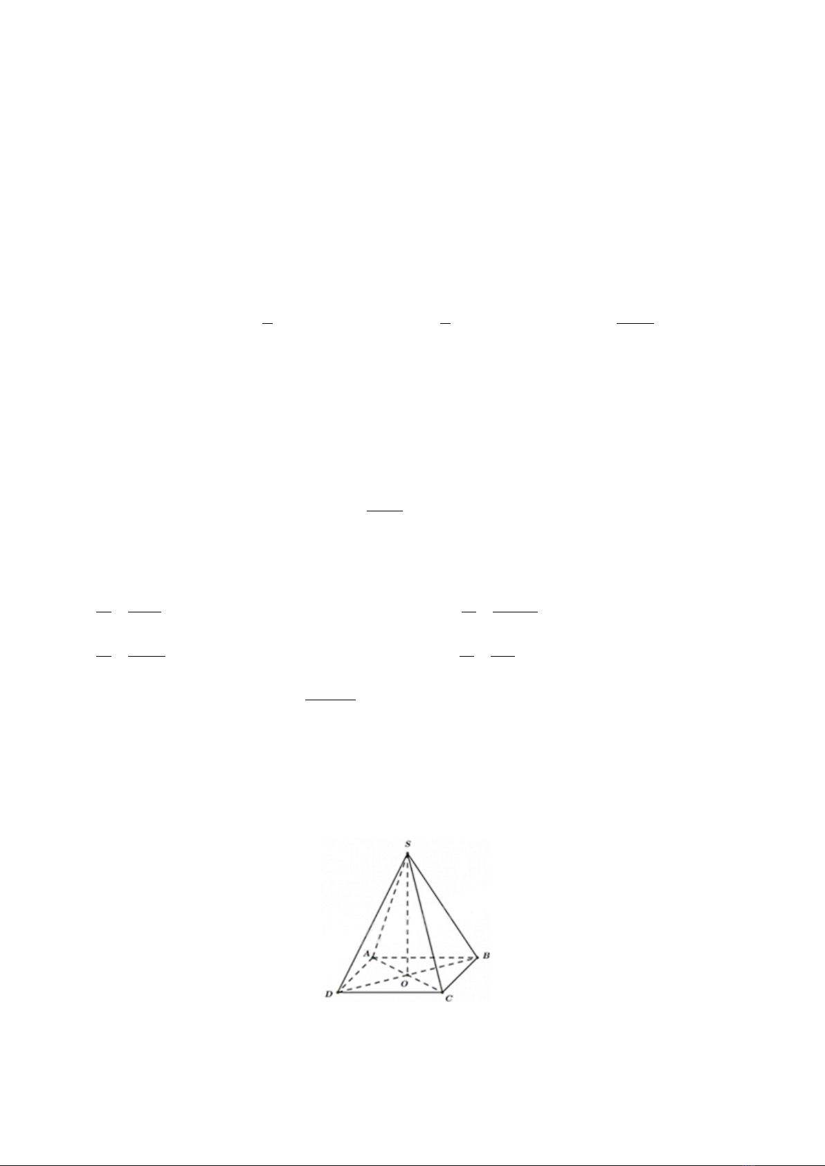 Câu 9: Cho hình chóp tứ giác đều S. ABCD như hình. Gọi O là giao điểm hai đường chéo AC