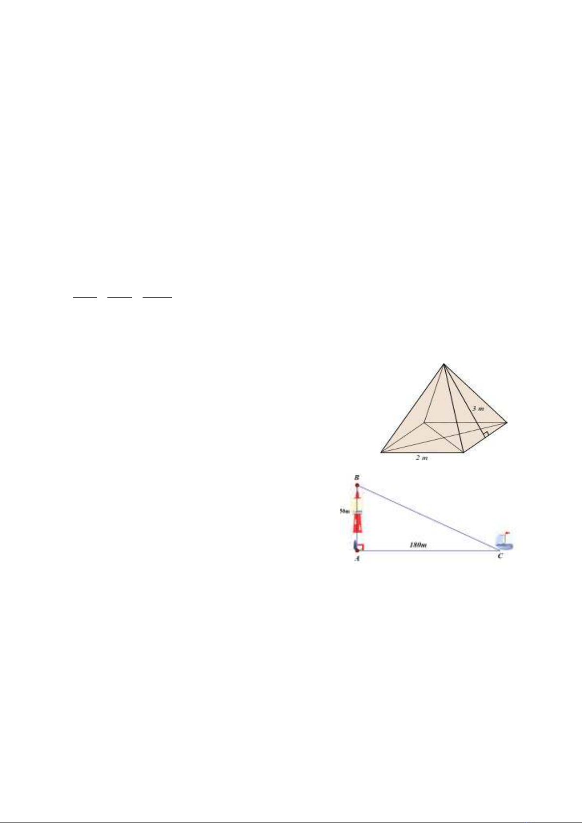 Câu 10: Cho hình chóp S.ABCD có đáy ABCD là hình vuông cạnh bằng 3cm, chiều cao của