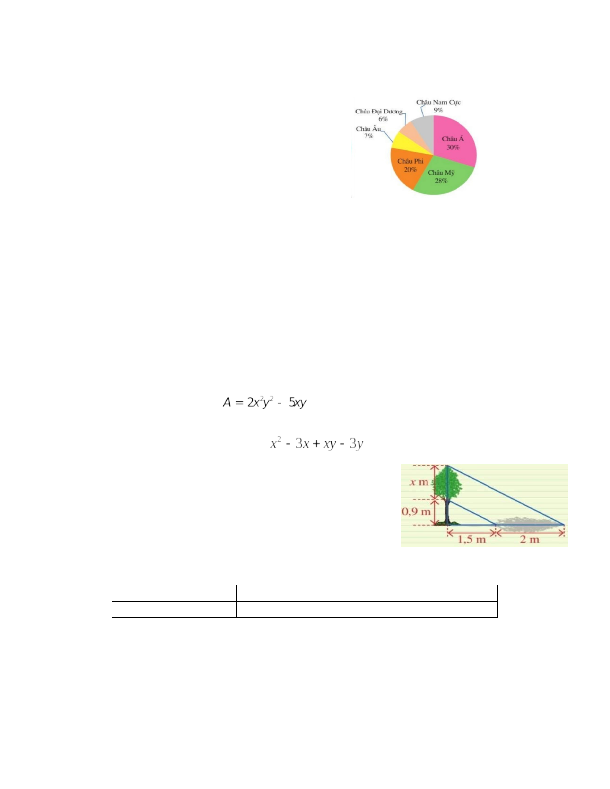 Câu 9. Hình vẽ bên là biểu đồ về diện tích các châu lục