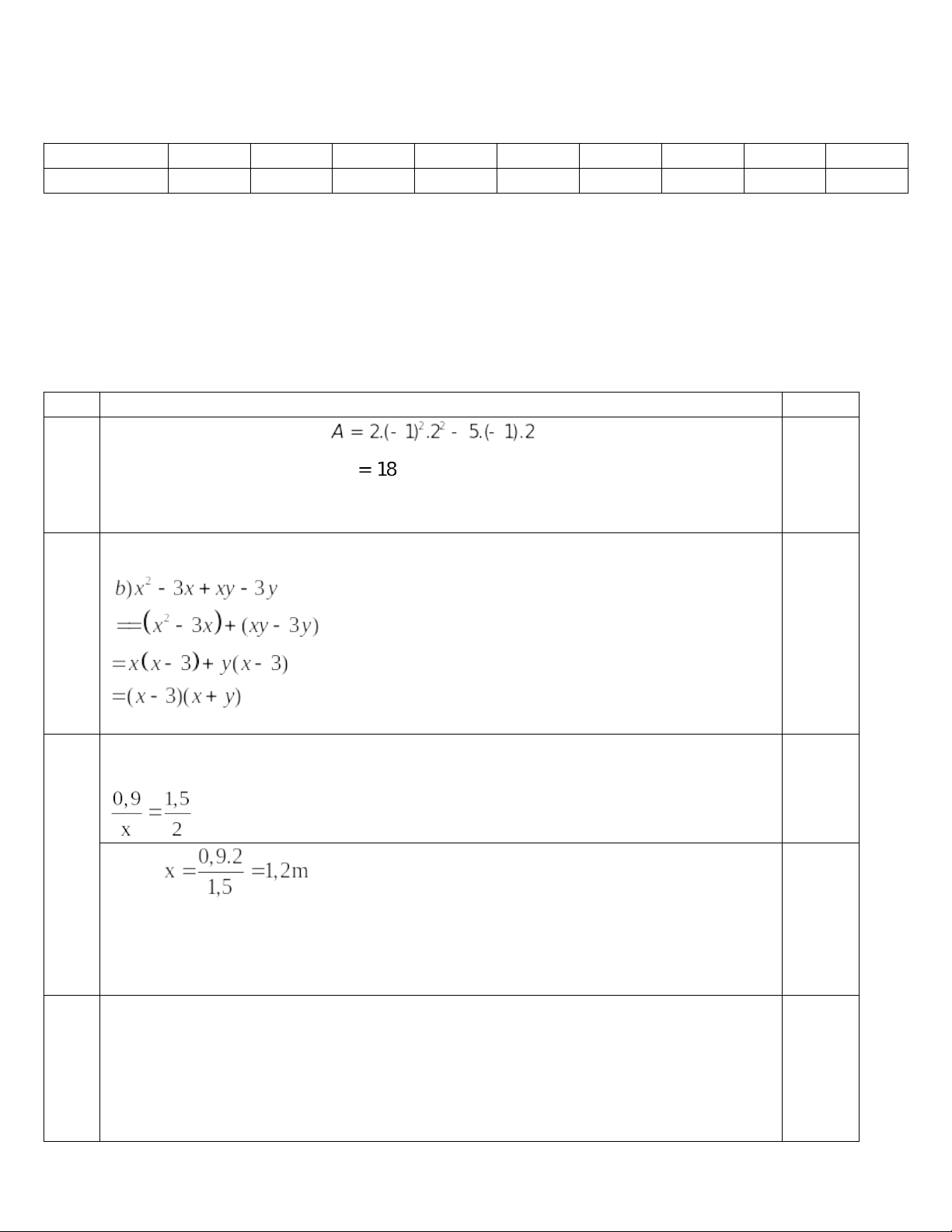 Vậy x = 1,2 m