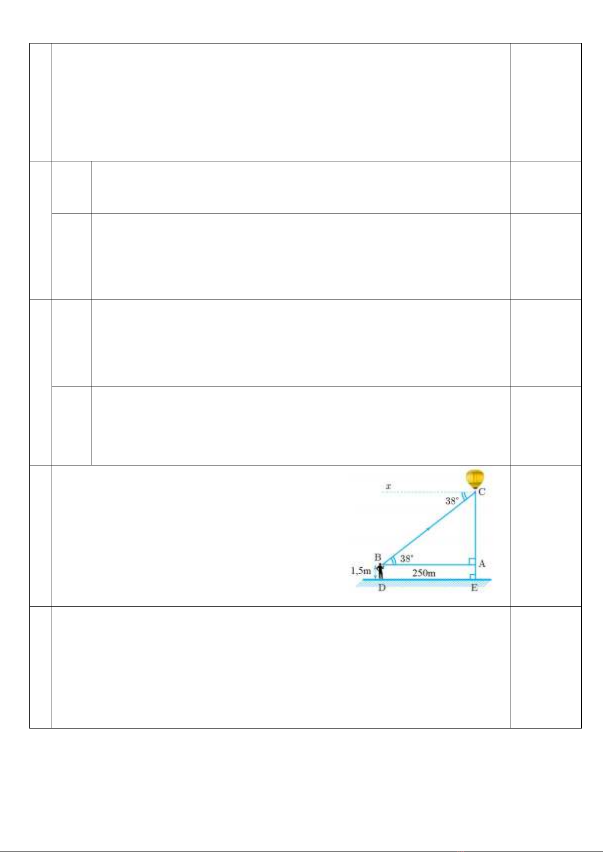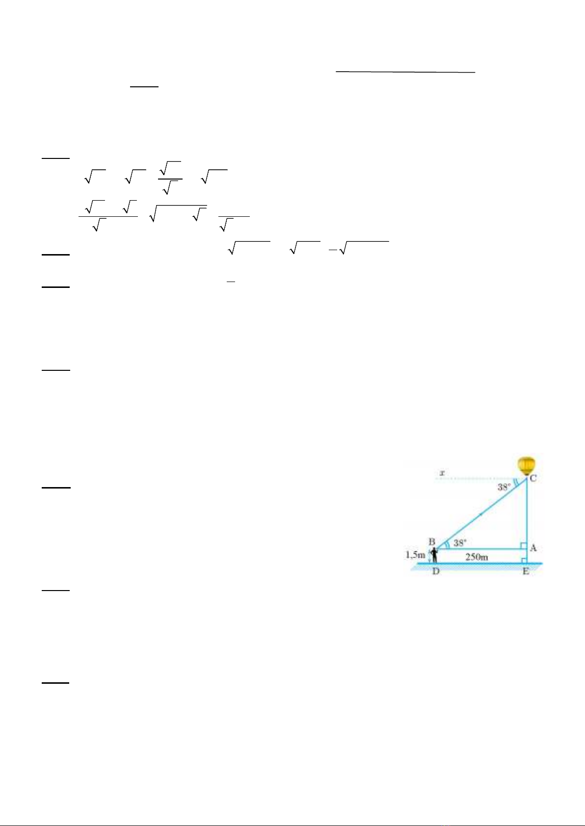 khí cầu 250 mét nhìn thấy nó với góc nâng 380 như hình vẽ. Tính độ