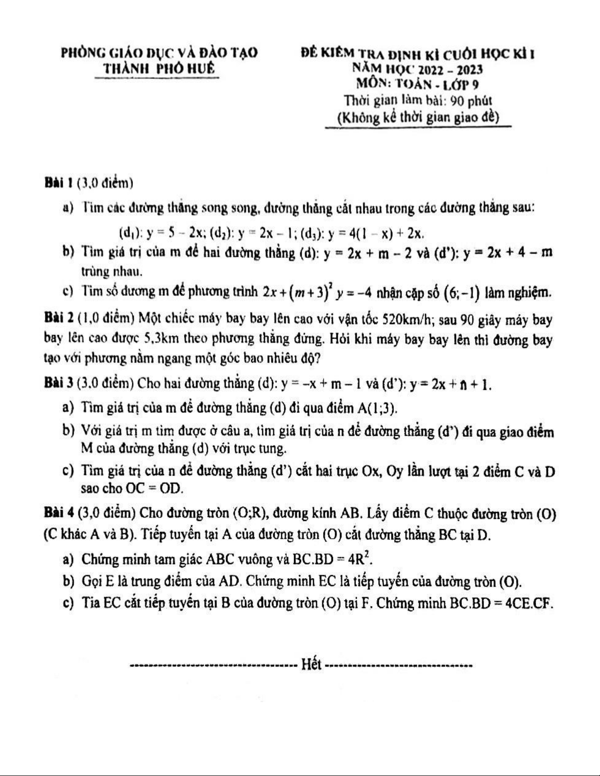 Đề thi học kì 1 môn Toán lớp 9 năm 2022-2023 - Phòng GD&ĐT TP Huế