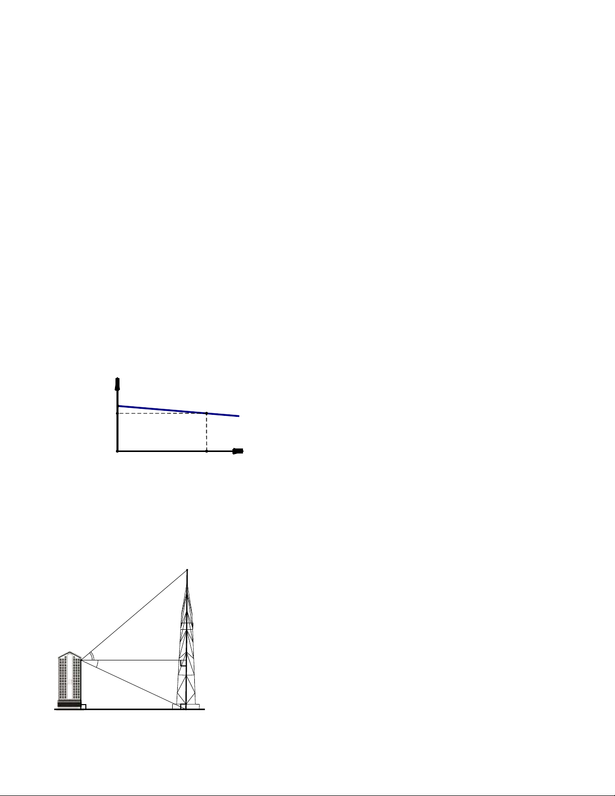 tháp truyền hình với góc nâng (góc nâng là góc tạo bởi phương nằm ngang và tia đi qua