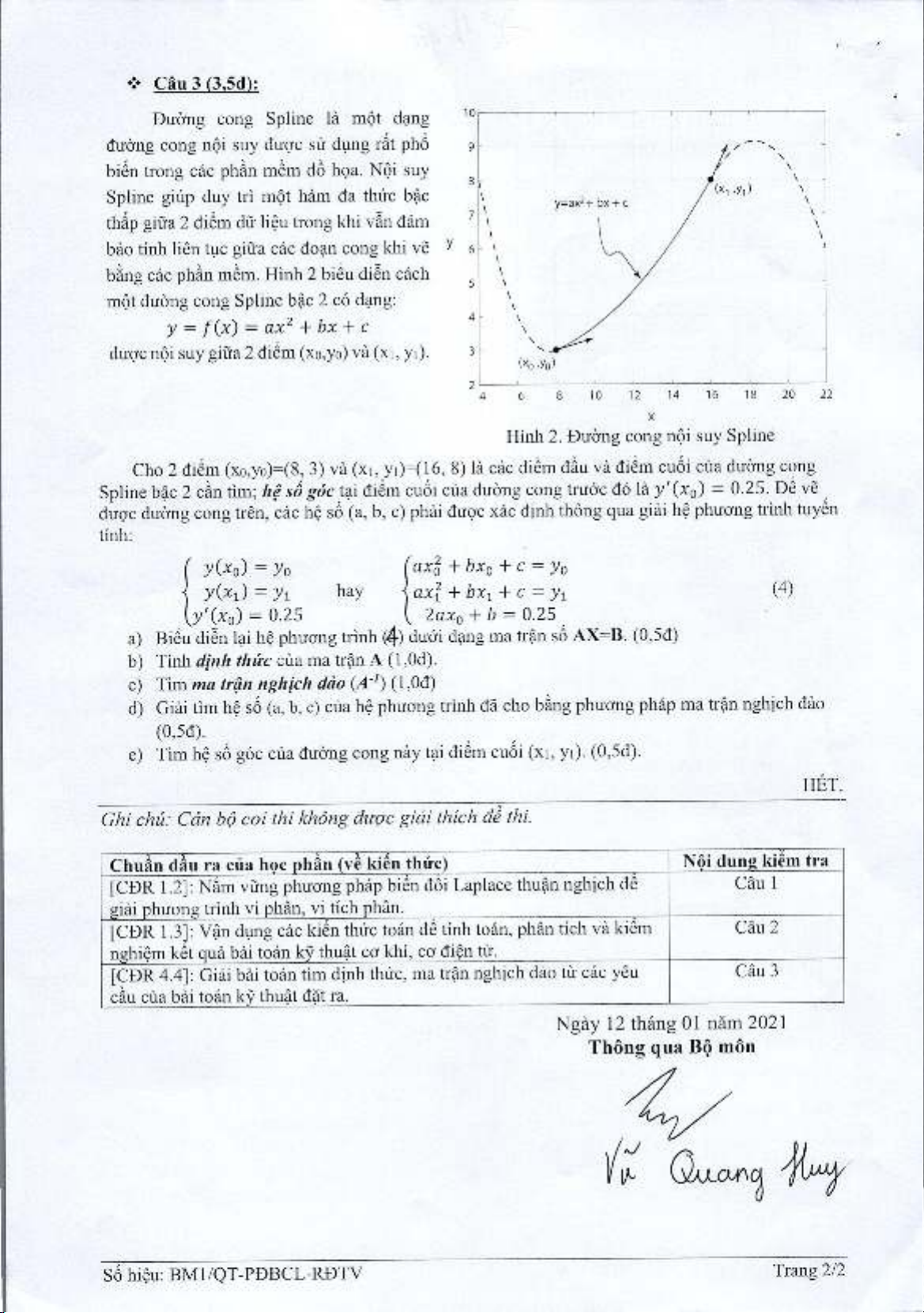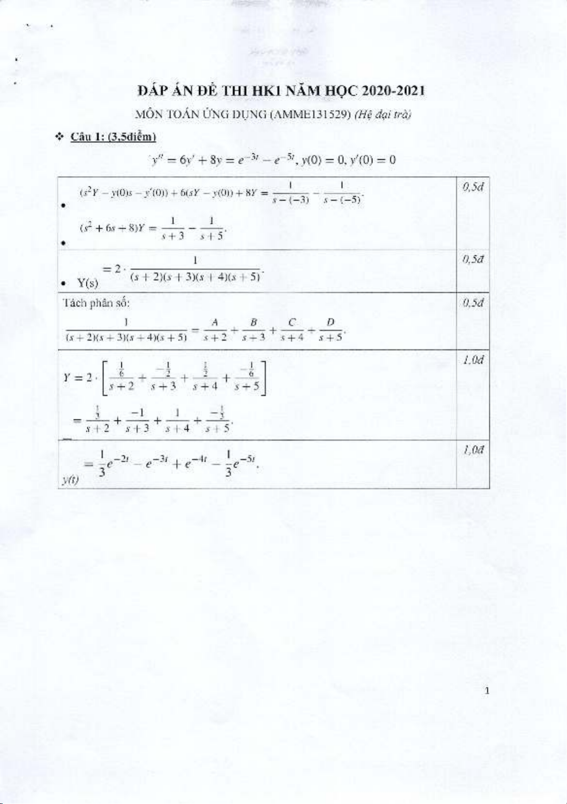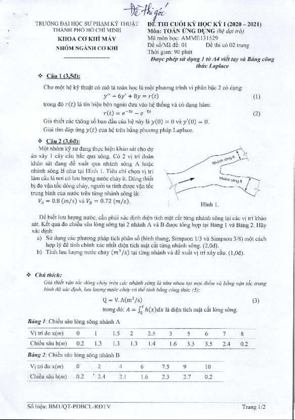 Đề thi học kì 1 môn Toán ứng dụng năm 2020-2021 có đáp án - Trường ĐH Sư Phạm Kỹ Thuật TP.HCM