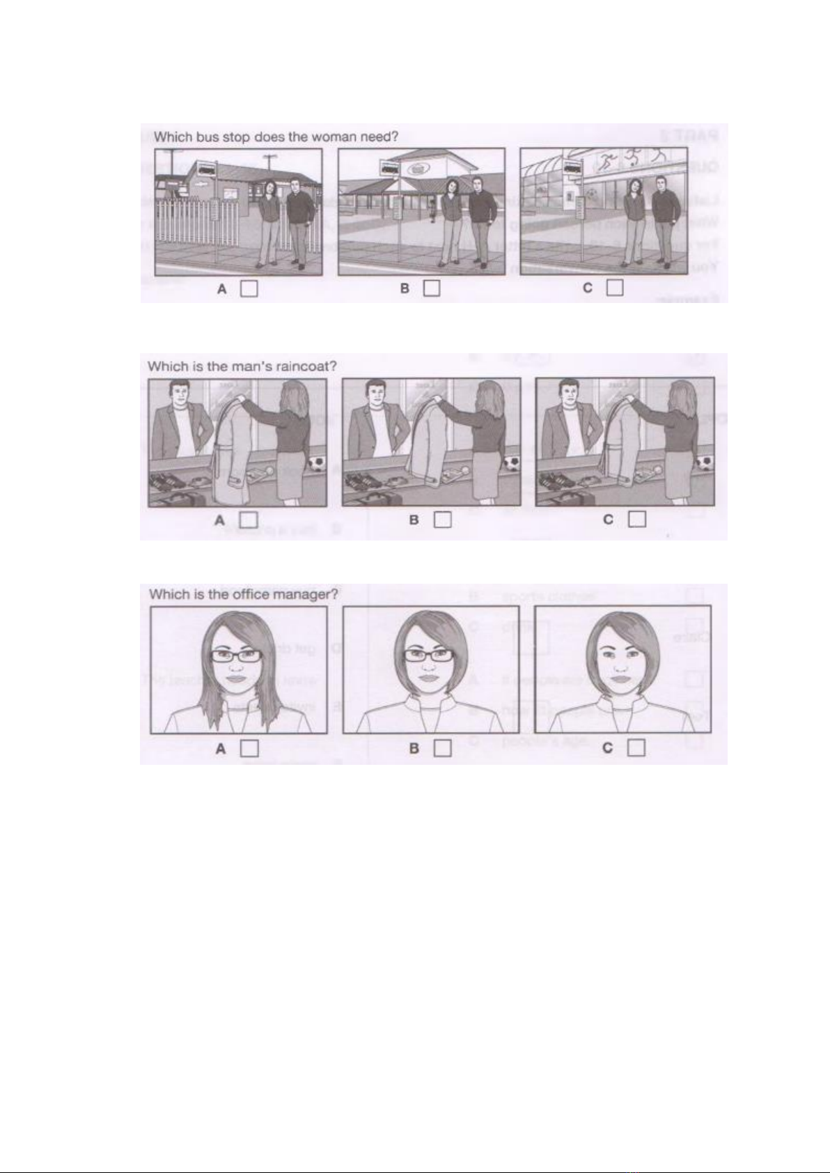 Part 2: Listen to Jessica talking to Frank about a dance class. Tick (/) A, B or c. You will hear the