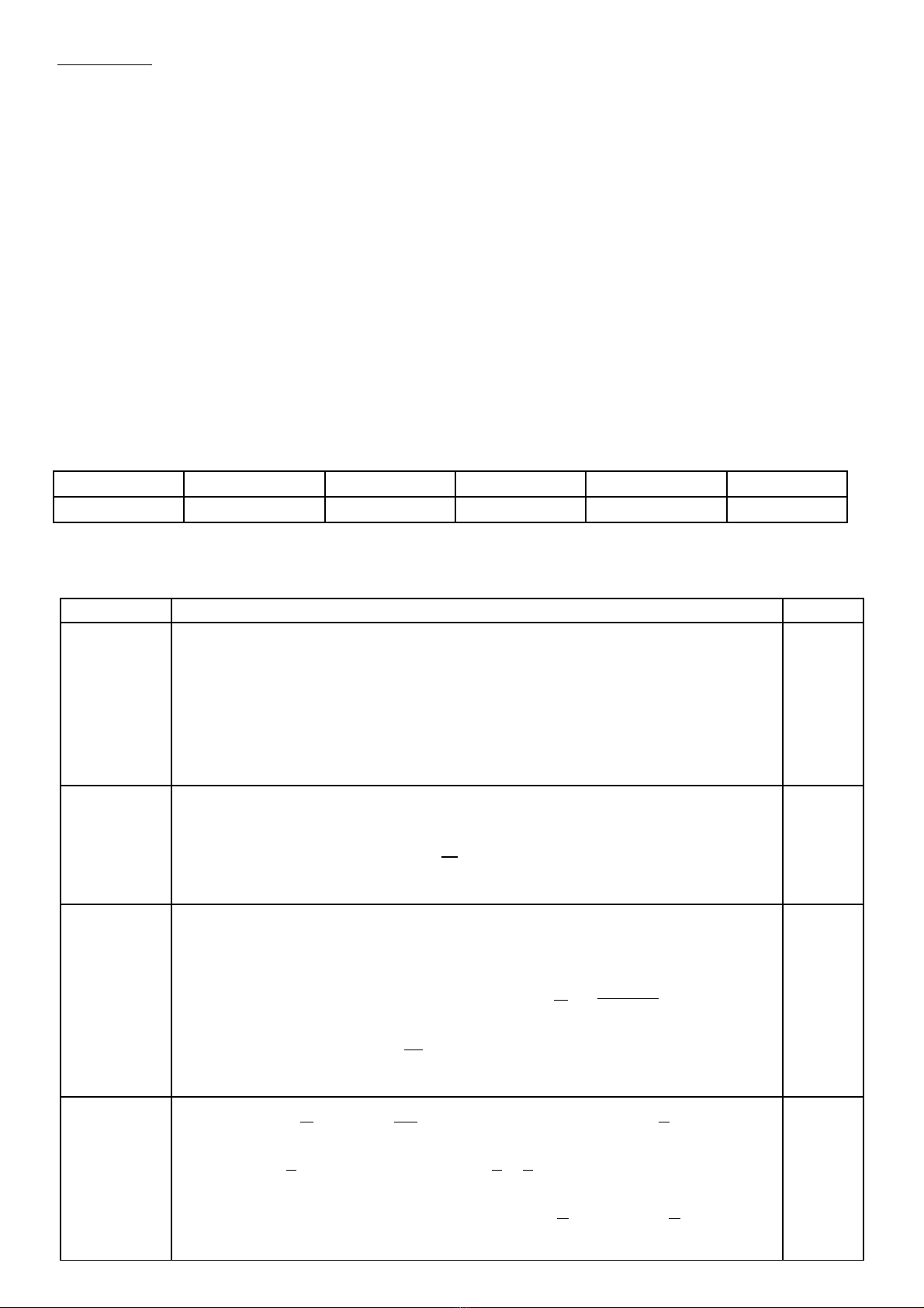 Số điểm 0,5 0,5 2,0 1,0 2,0 6