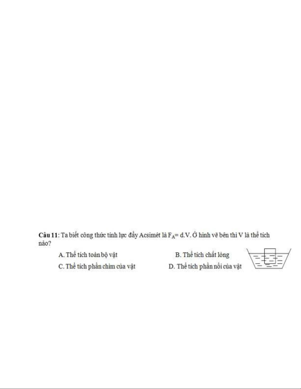 Câu 12: Lực đẩy Acsimét phụ thuộc vào các yếu tố: