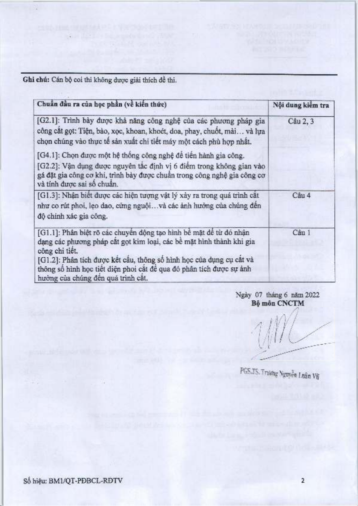 Ghi chú: Cán bộ coi thi không được giải thích đề thi.