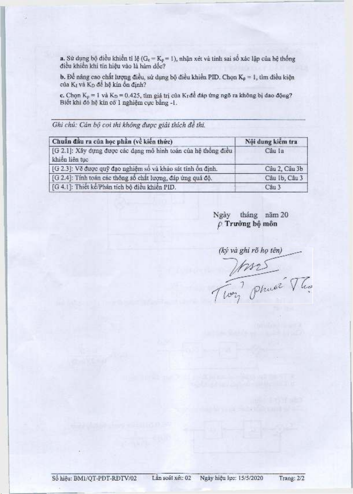 [G 2.4]: Tính toán các thông số chất lượng, đáp ứng quá độ. Câu lb, Câu 3