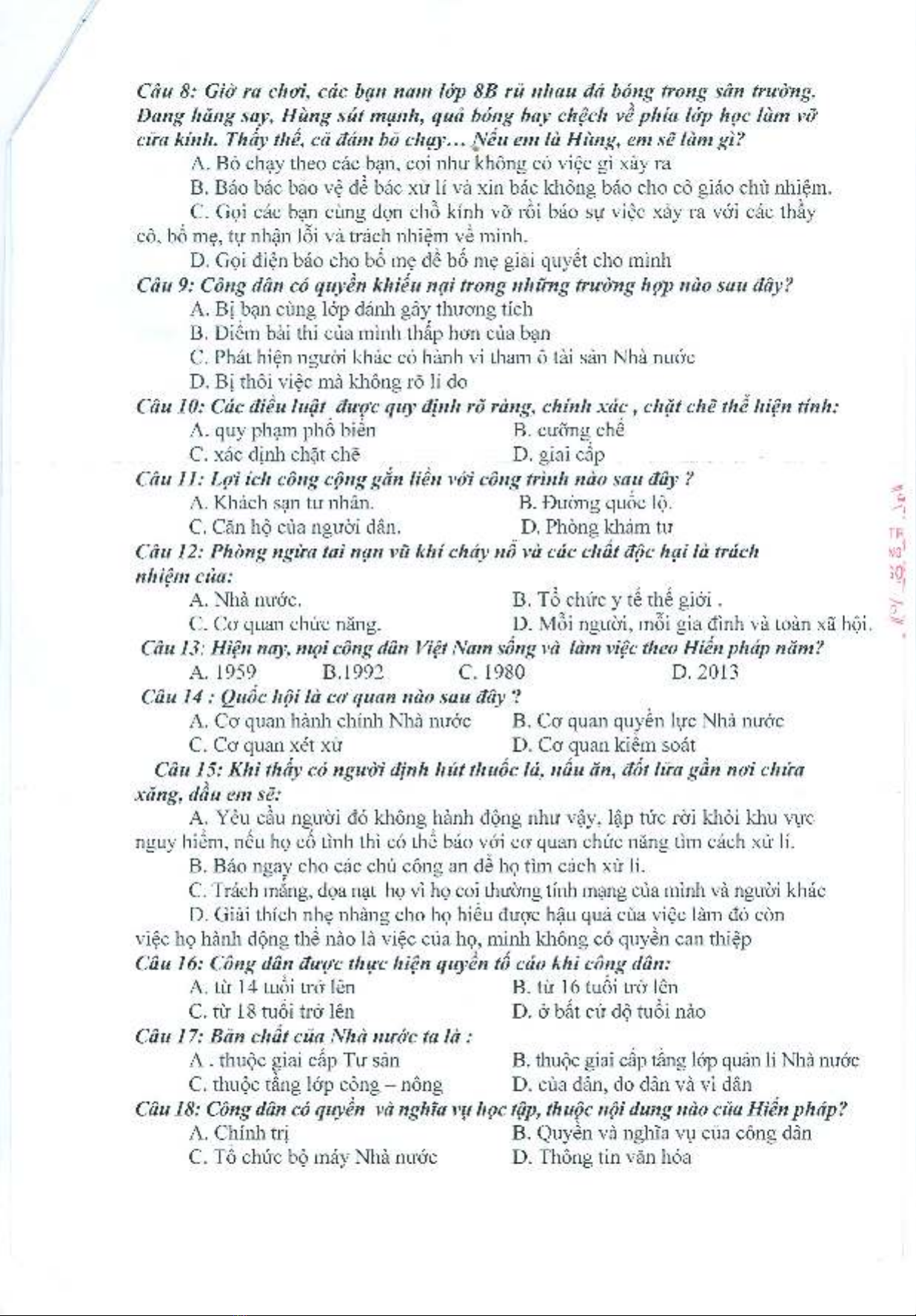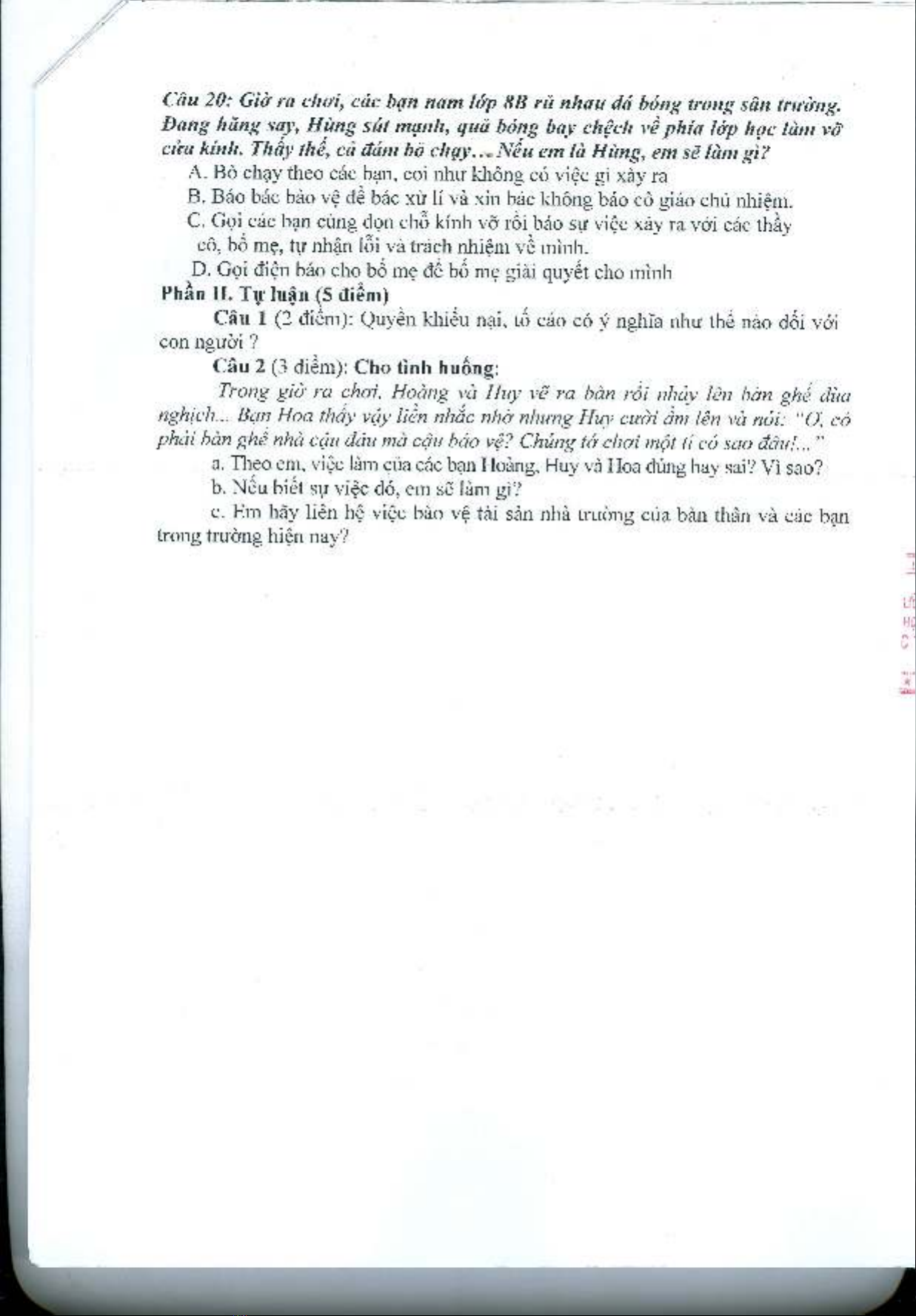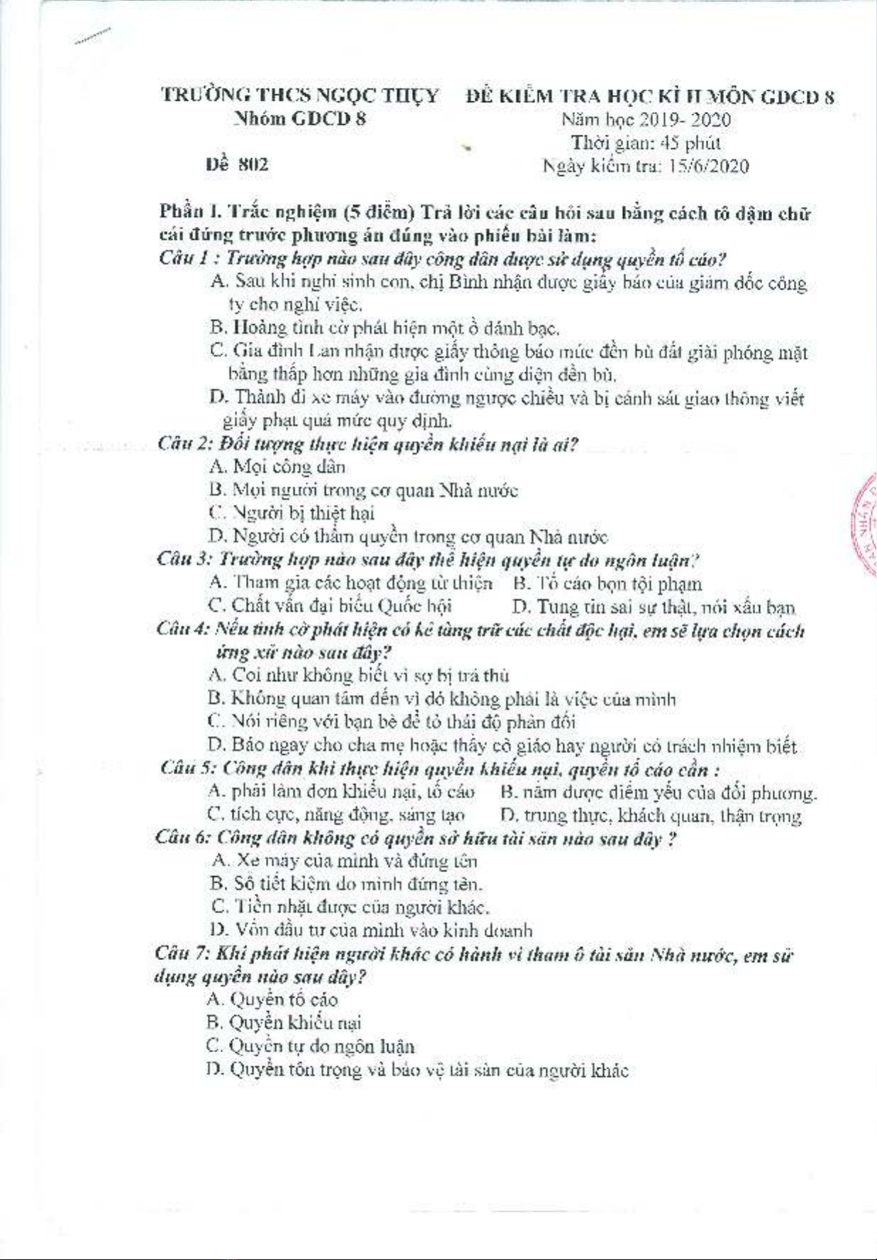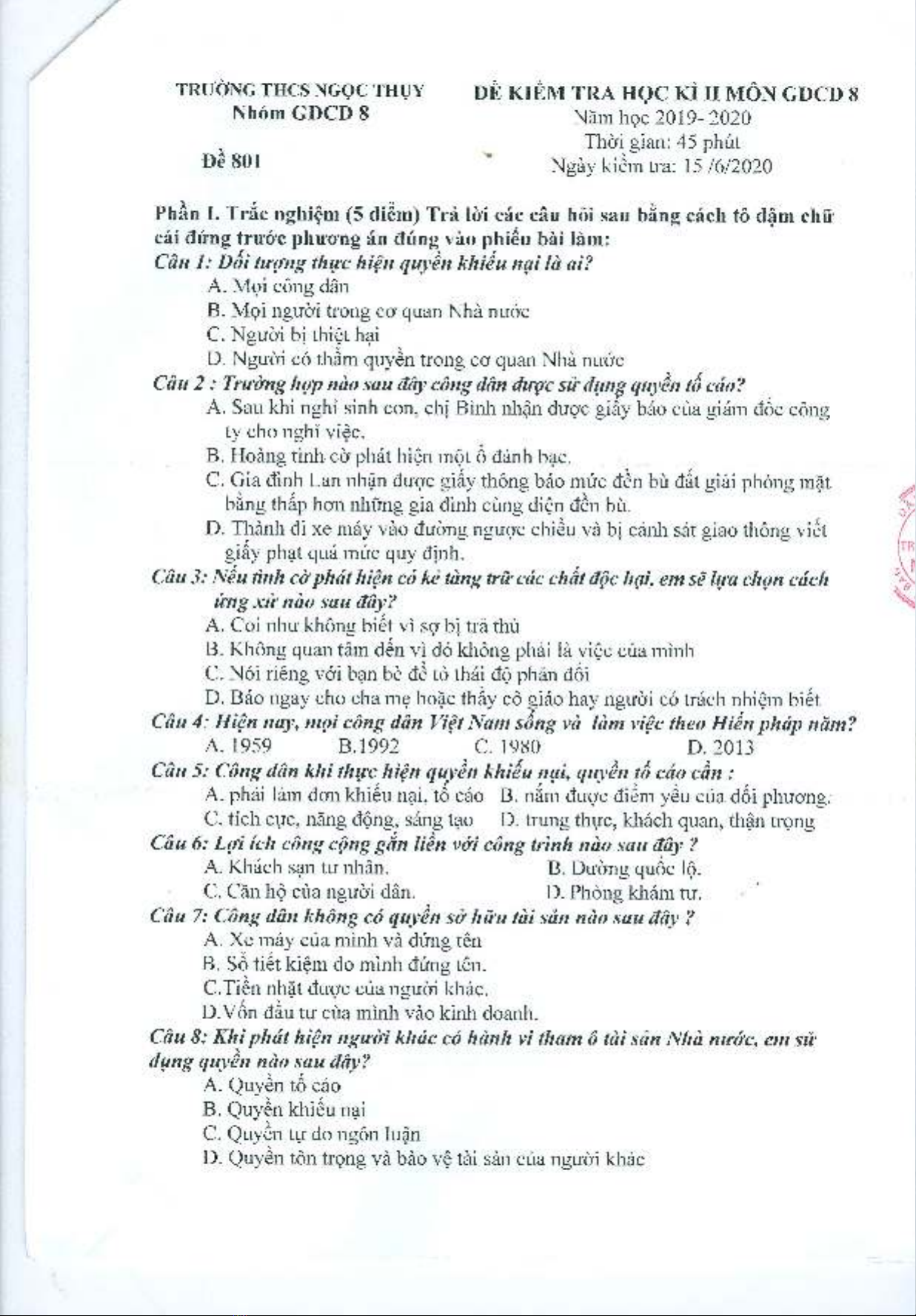 Đề thi học kì 2 môn GDCD lớp 8 năm 2019-2020 – Trường THCS Ngọc Thụy