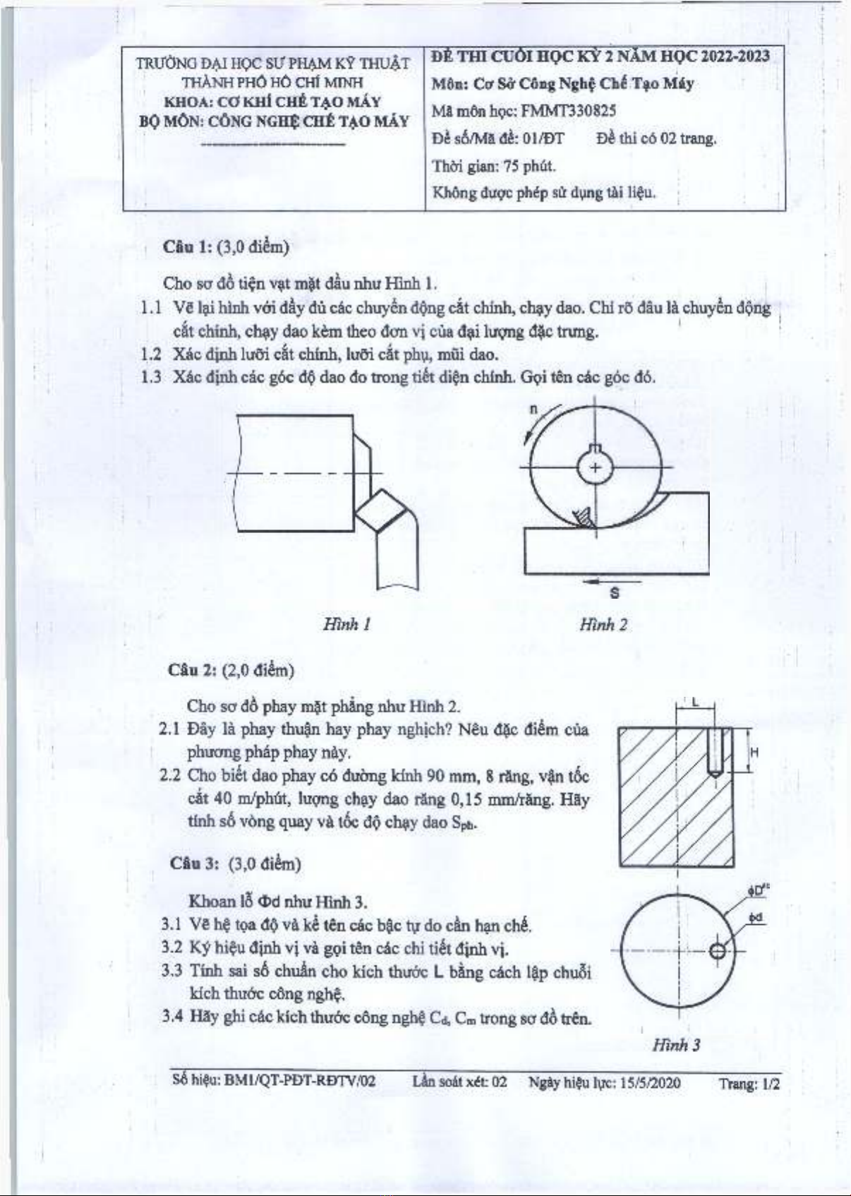 Mon: Co Sif C6ng Nghf Chi T?o Mdy