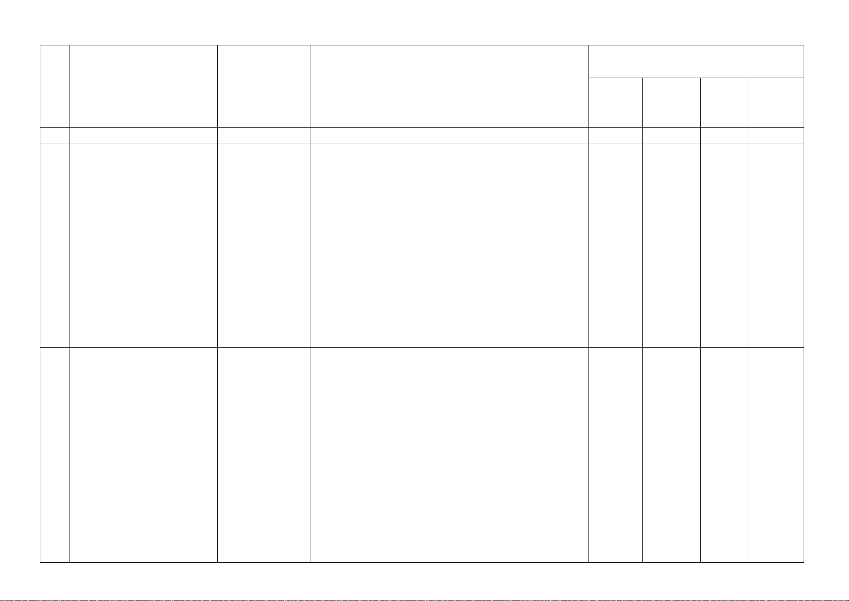 Mức độ kiến thức, kĩ năng cần kiểm tra,