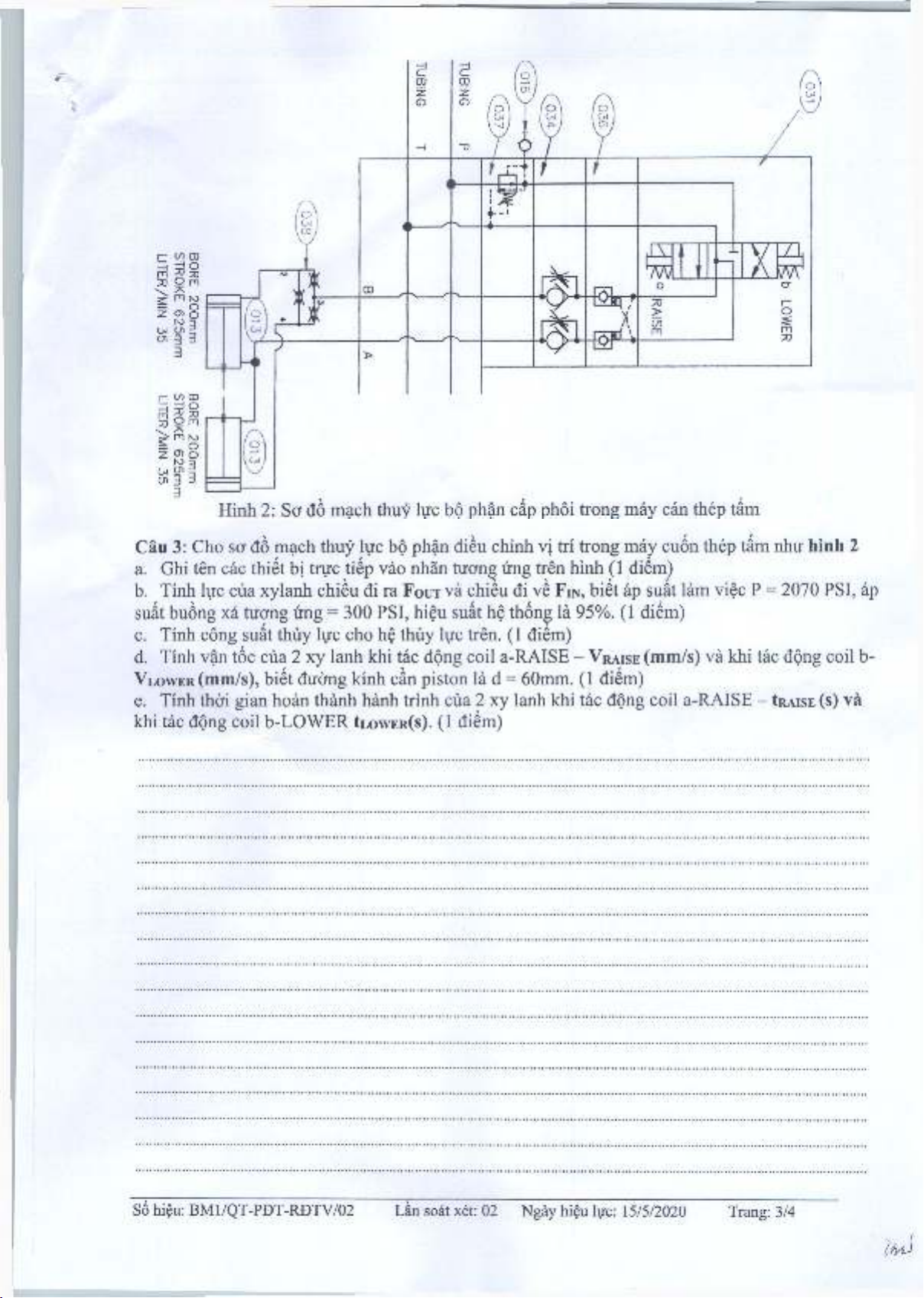 Cäu 3: Cho so dö mach thuy luc bö phän dieu chinh vi tri trong mäy cuön thep täm nhu hinh 2