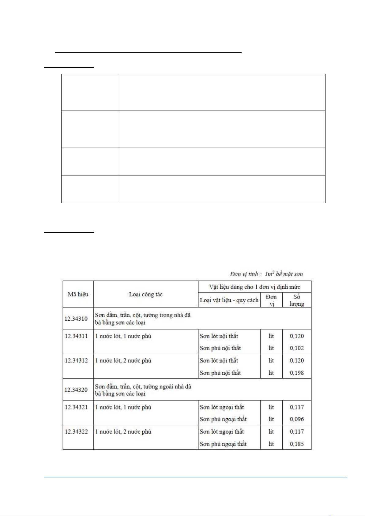 Câu 12 (0.5Đ): Dựa vào bảng bên dưới, hãy xác định mã hiệu và khối lượng sơn phủ nội thất
