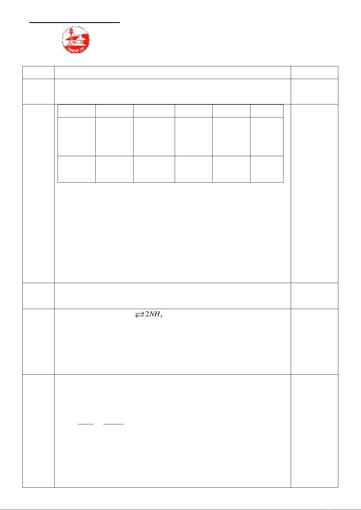 Câu 4. (1 đ) Cho cân bằng hóa học sau (xảy ra trong bình kín):