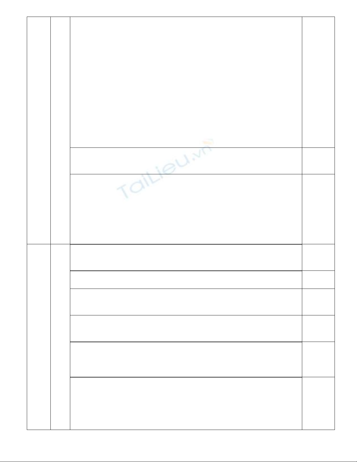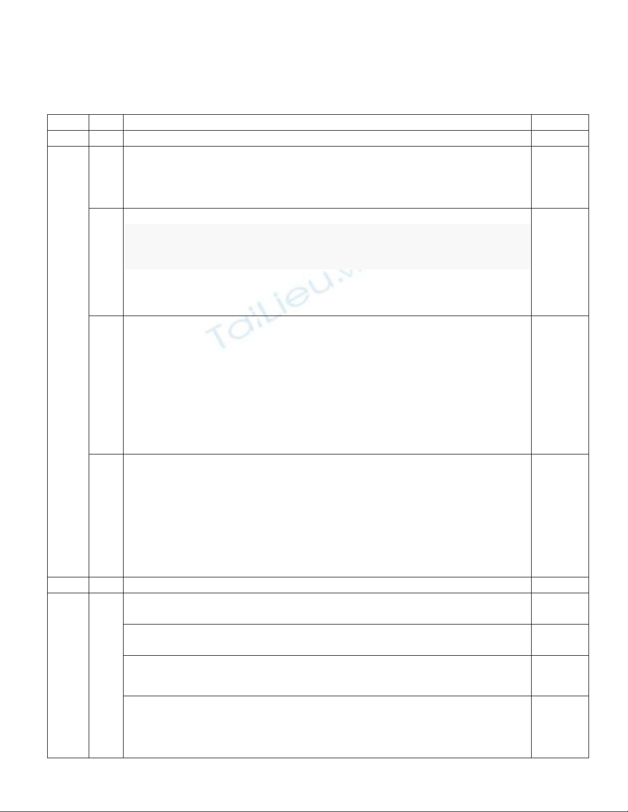 - Học sinh trả lời sai hoặc không trả lời: 0 điểm.