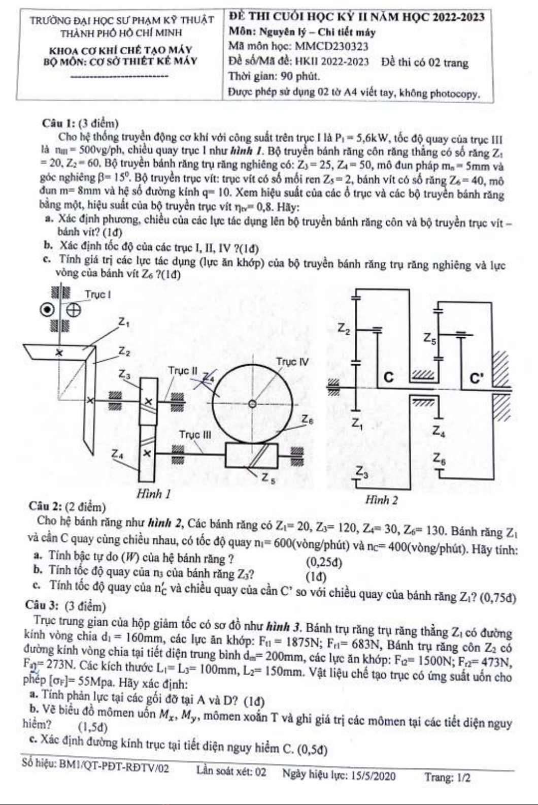 Hệ bánh răng đã cho gồm hai hệ: hệ vi sai (𝑍1, 𝑍2, 𝑍3 và cần C) và hệ hành tinh