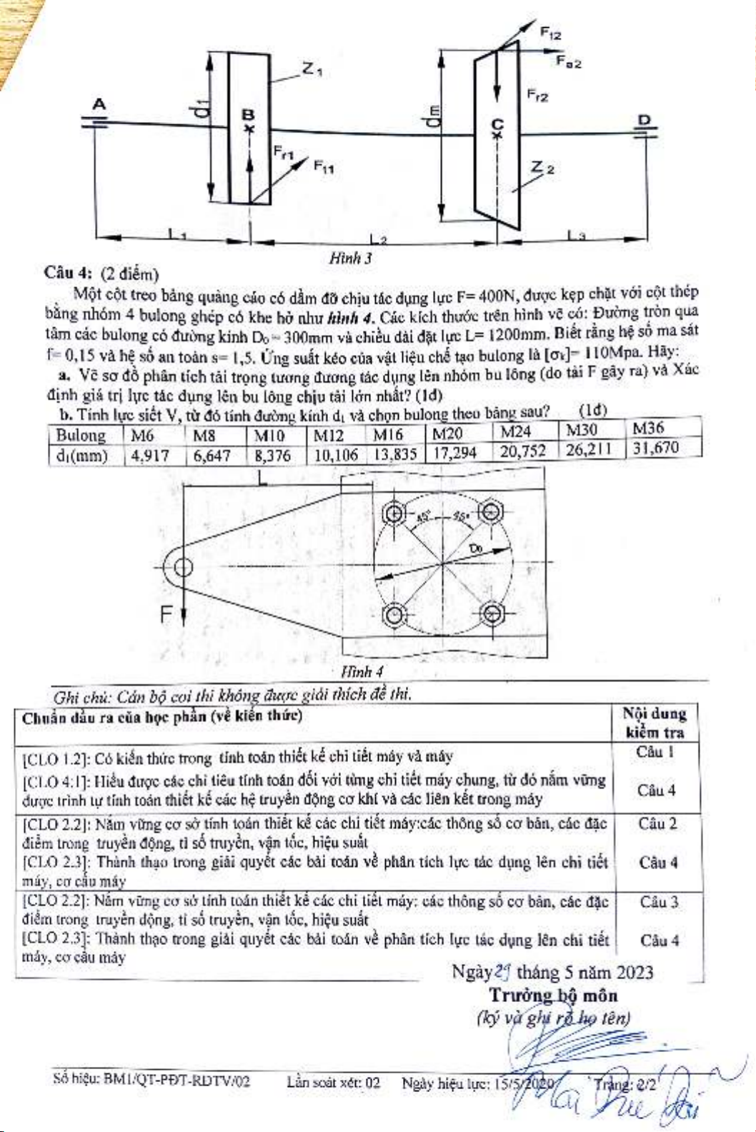 Xác định đường kính trục tại tiết diện C theo chỉ tiêu độ bền: