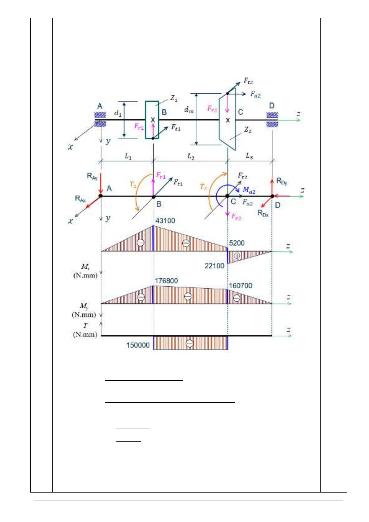 Vẽ biểu đồ mômen uốn Mx, My, mômen xoắn T và ghi giá trị các mômen tại các