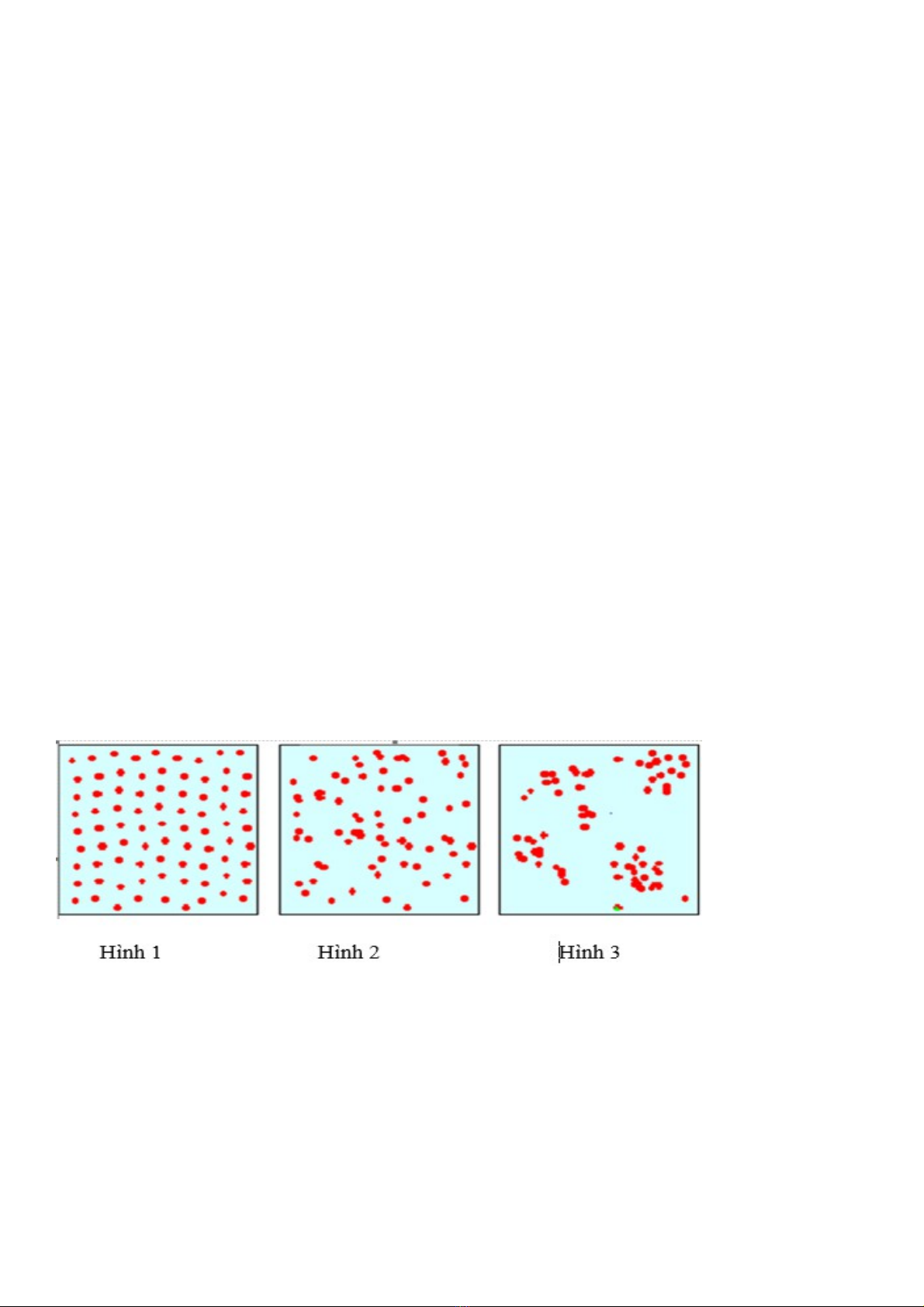Câu 18: Hình ảnh sau diễn tả kiểu phân bố của cá thể trong quần thể.