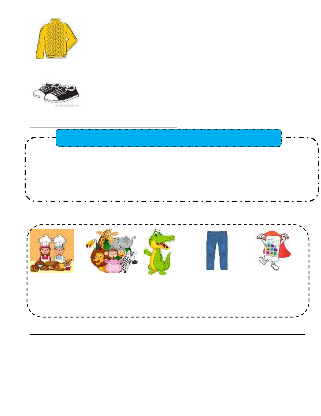 3. A. sandals B. monkey C. zebra