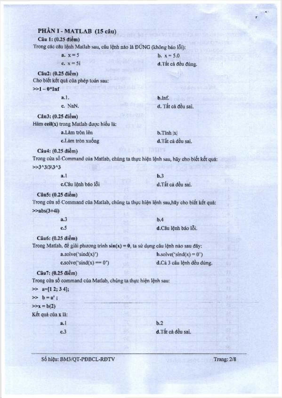 Trong cac cau lenh Matlab sau, cau lenh nao la DUNG (khong bao 16i):
