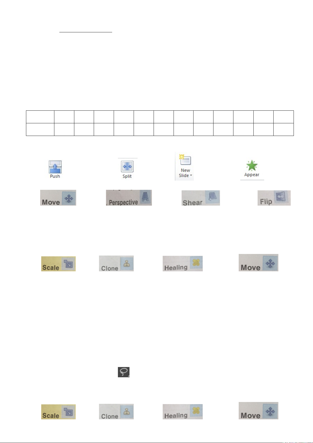 Câu 1. Nút lệnh tạo hiệu ứng cho đối tượng là: