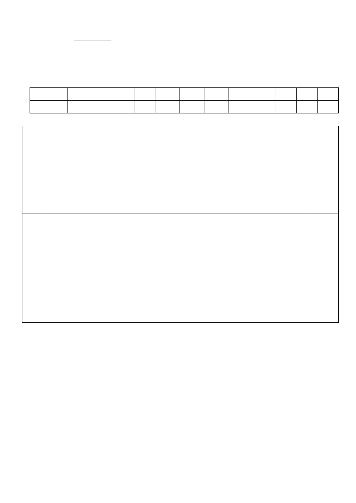 Chọn đáp án đúng nhất (từ câu 1 đến câu 12 ) và điền vào bảng dưới đây:
