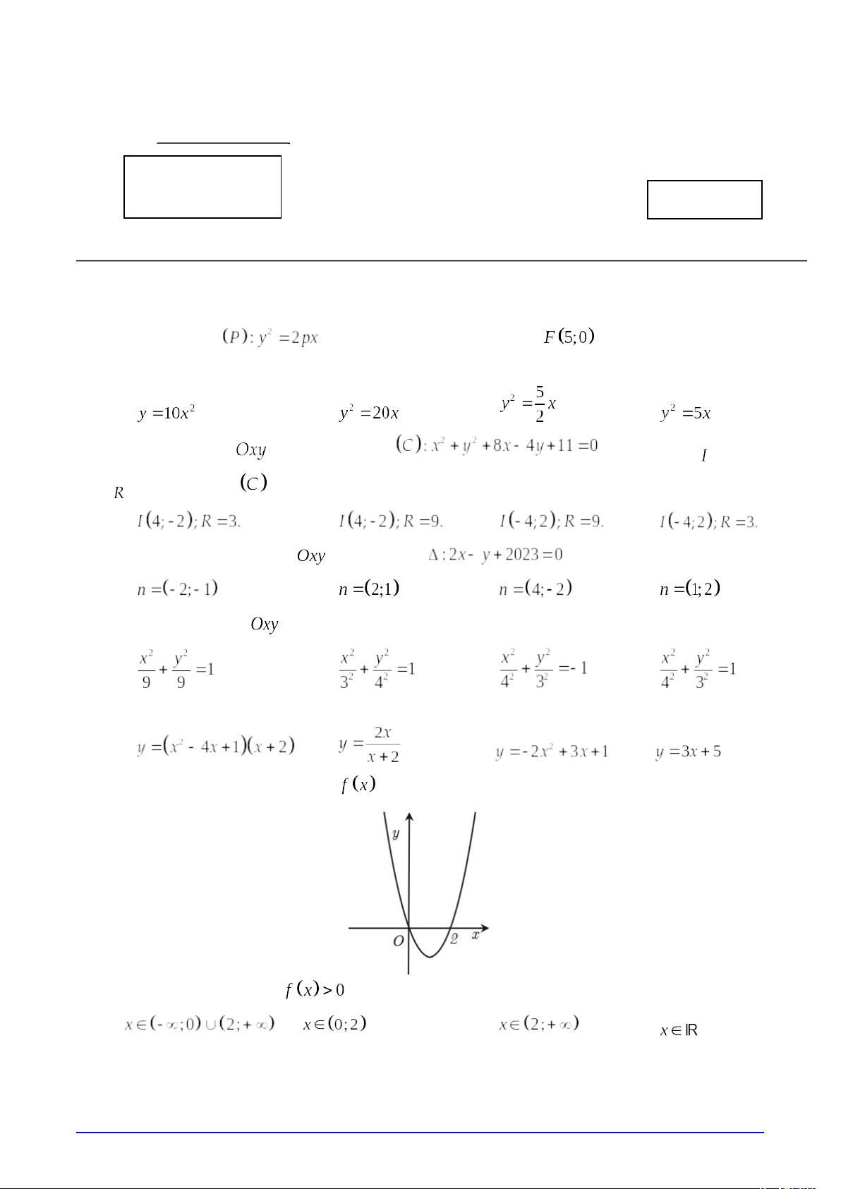 Câu 1. Cho parabol biết rằng parabol có tiêu điểm . Phương trình chính tắc